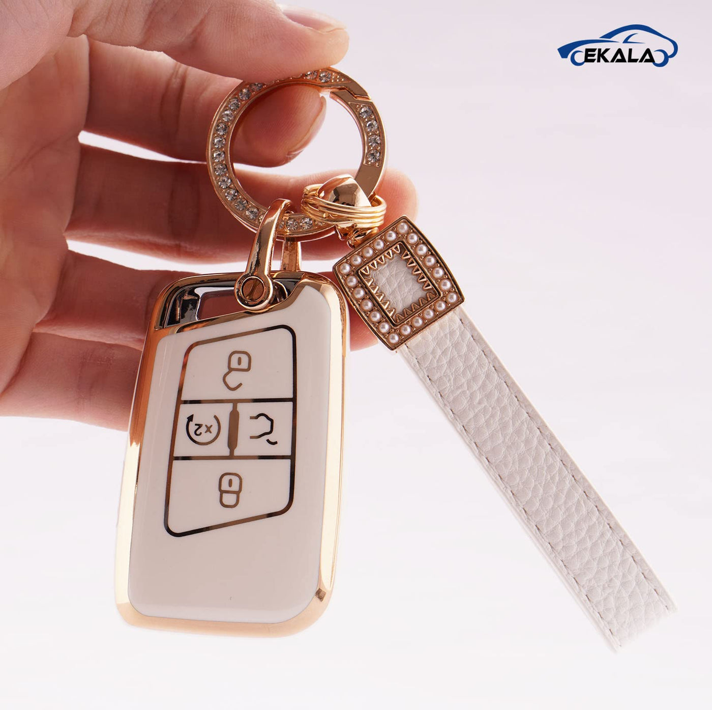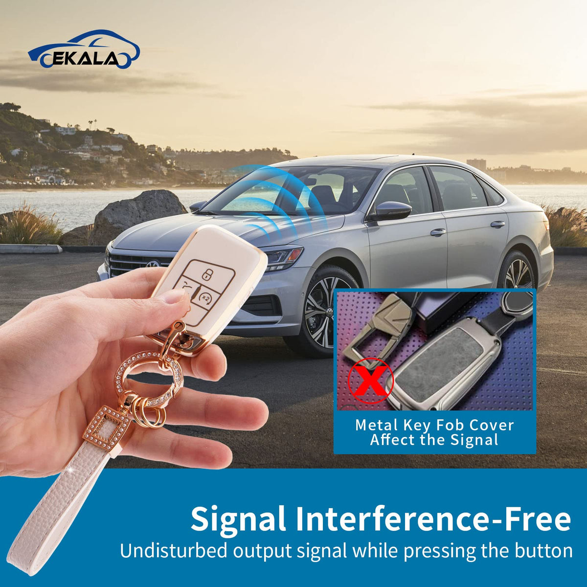 EKALA for Volkswagen Key Fob Cover with Leather Key Fob Keychain, 4 Buttons Soft TPU Keys Shells Girly White Key Fob Cover Compa