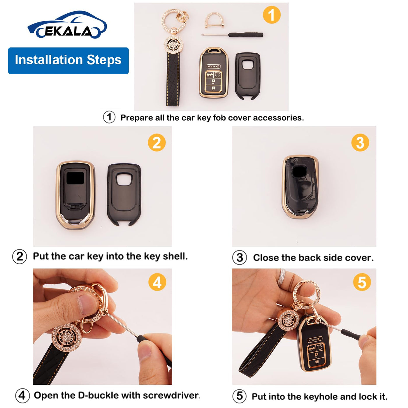 for Honda Key Fob Cover Case 1.for Accord (2013-2021) 2.for Civic (2014-2021) 3.for Odyssey (2014-UP) 4.for CR-V (2014-UP) 5.for HR-V (2014-UP) 6.for Fit (2013-UP) 7.for JED (2013-UP) 8.for Crosstour (2013-UP) 9.for Crider (2013-UP) 10.for Spirior (2015-UP) 11.for Pilot (2016-UP) 12.for CR-Z (2016-UP) 13.for Ridgeline (2017-UP) NOTICE: Even if the type of the car is the same, the car key might be different based on the different year of manufacturing. So Make sure to follow the above picture details when placing order. SEAMLESS TPU KEY FOB COVER (1)Soft and Durable TPU Made with Premium Soft TPU, thickness of 0.8mm and will not fade. (2)Interference-free Undisturbed output signal while pressing the button. (3)Smooth surface Effectively protect the key from failing, scratch and dust.. (4)Prevent from losing. Beautiful appearance and 360 Degree Full Protection.