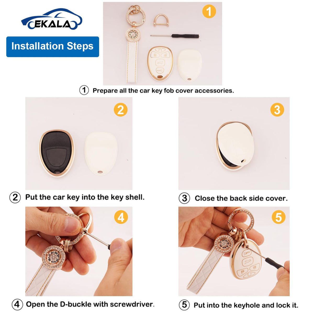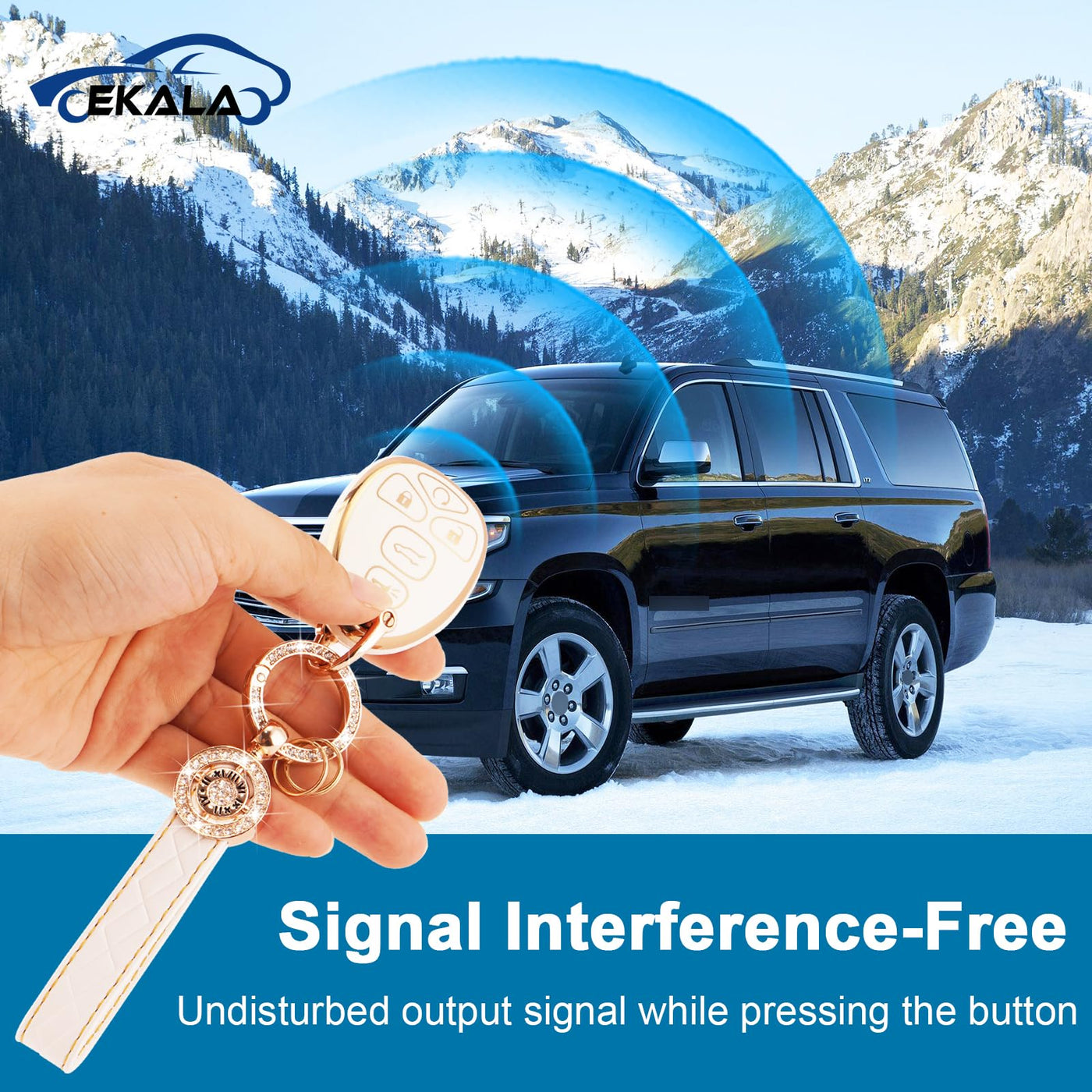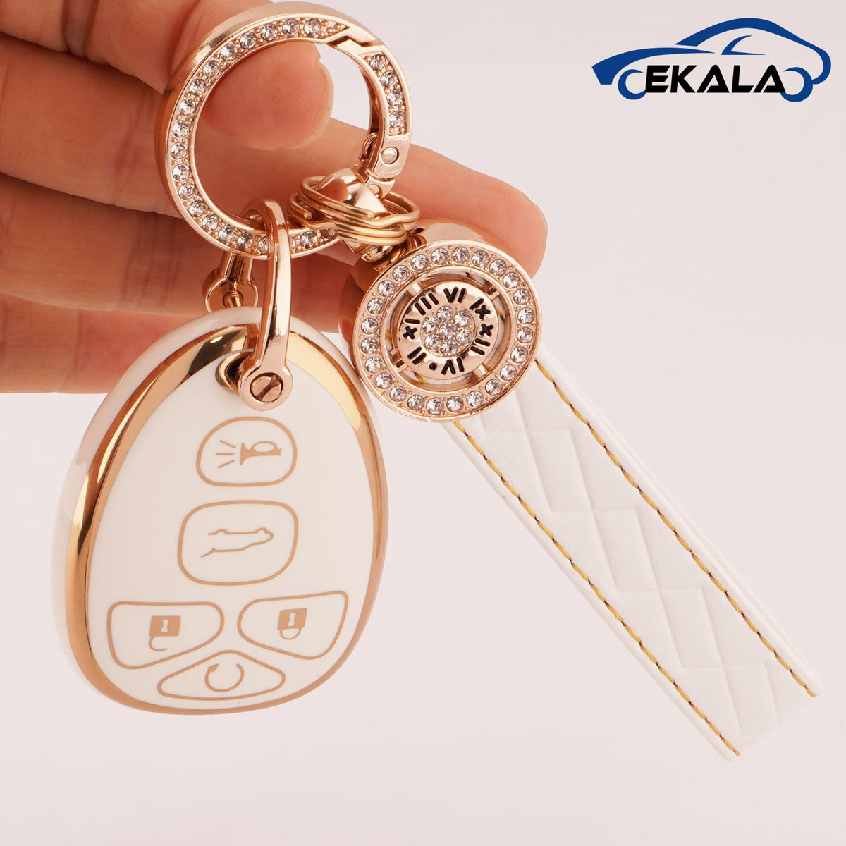 EKALA TPU Key Fob Cover with Leather Keychain Lanyard Fit for Chevy Traverse Tahoe Suburban/GMC Yukon Acadia/Cadillac Escalade S