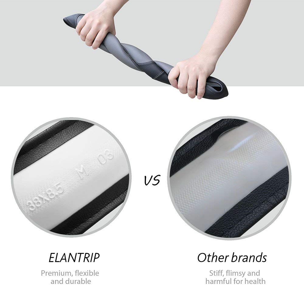 Elantrip Leather Steering Wheel Cover 15 1/2 To 16 Inch Universal Large Grip Breathable For Car Truck Suv Jeep Anti Slip Black A