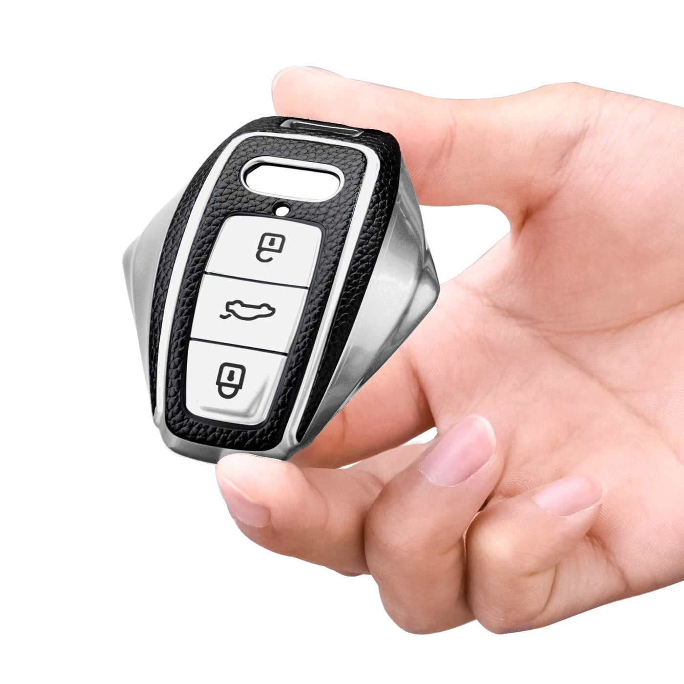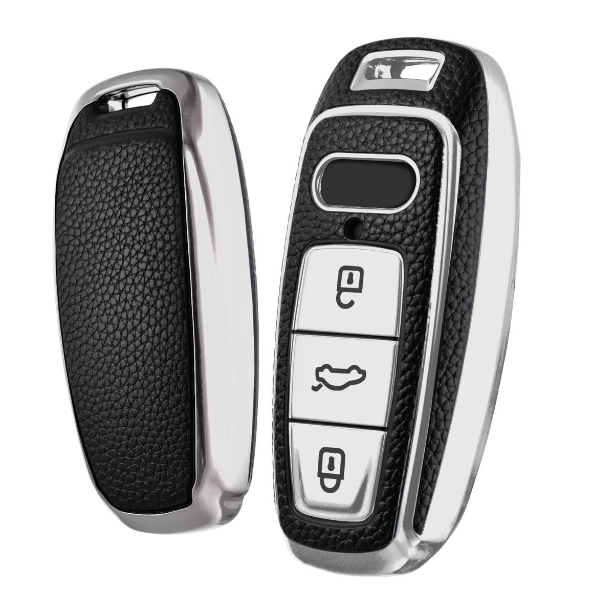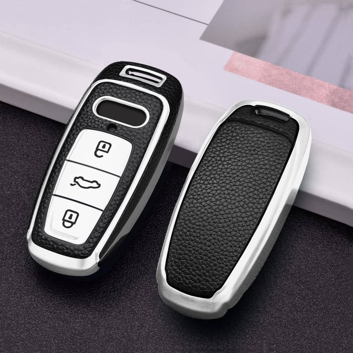 Elohei For Audi Key Fob Cover, Special Soft Tpu Key Case Cover Protector Compatible With Audi A6L A6 A7 A8 Q7 Q8 E-Tron 2018-2022 A3 S3 S6 Sq7 Rs6 S7 Rs7 Smart Key(Leather Texture Silver)