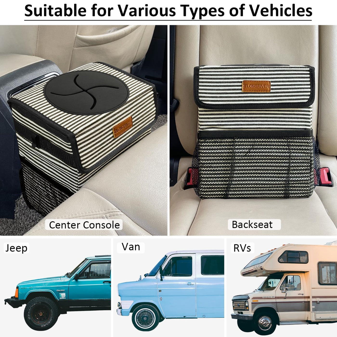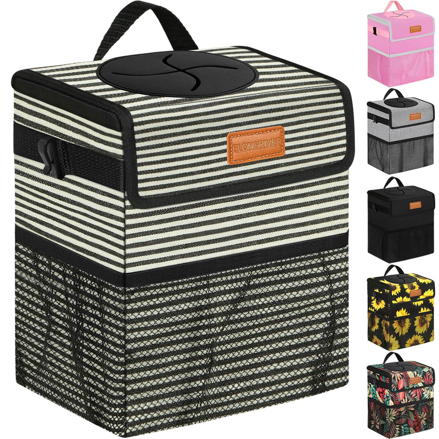 Elongriver Car Trash Can Bin For Car Back Seat Leak Proof, Cute Car Trash Bag Hanging, Vehicle Trash Can For Suv Truck Van, Automotive Car Garbage Cans Front Seat Stripe