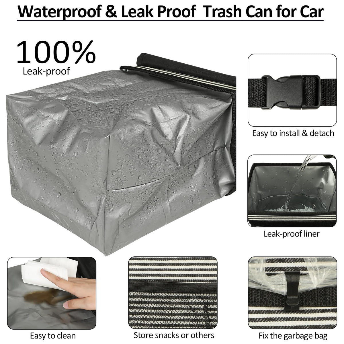 Q: What makes the ELONGRIVER car trash can leak-proof?A: The ELONGRIVER car trash can is designed with a premium leak-proof liner and sturdy stitching, which effectively prevents leaks and spills. This feature allows you to store wet items without the worry of damaging your vehicle's interior.