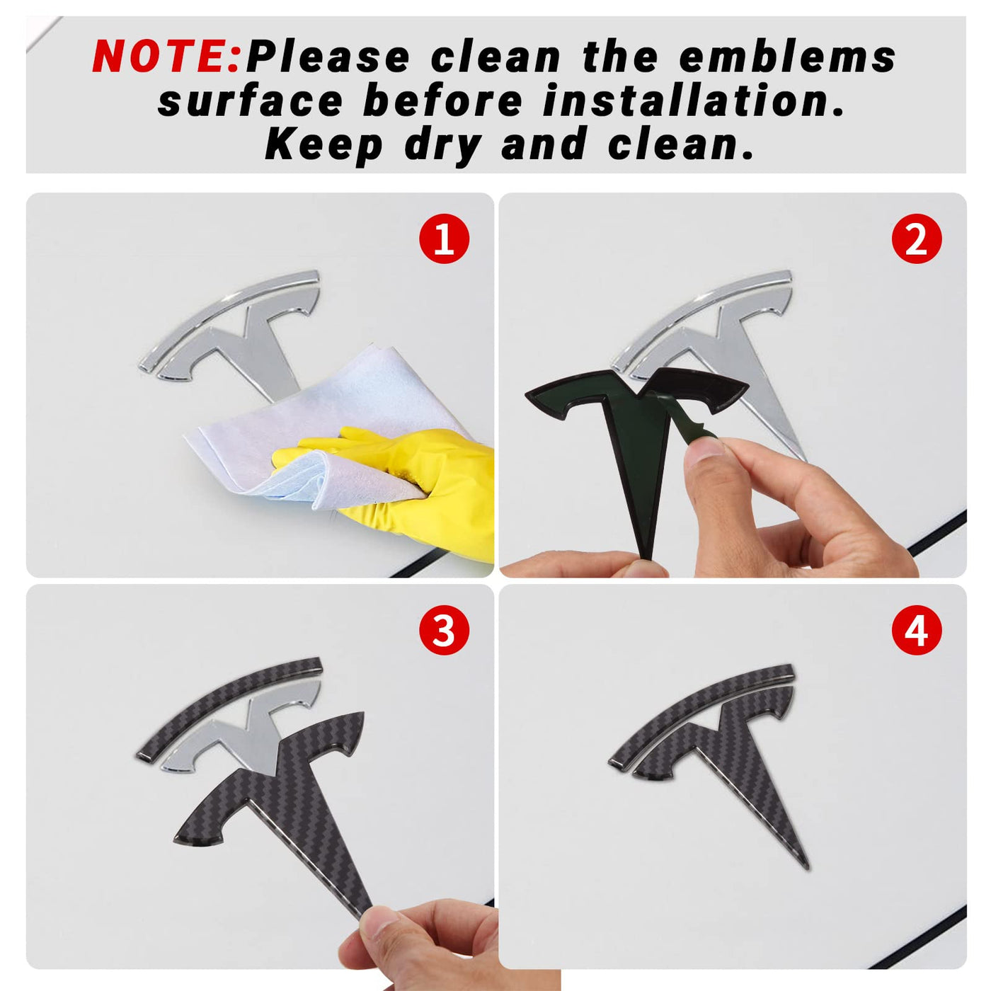 Q: What material are the Tesla emblem stickers made from?A: The emblem stickers are made from premium ABS plastic, which helps protect the original Tesla logo while adding a unique touch to your vehicle.