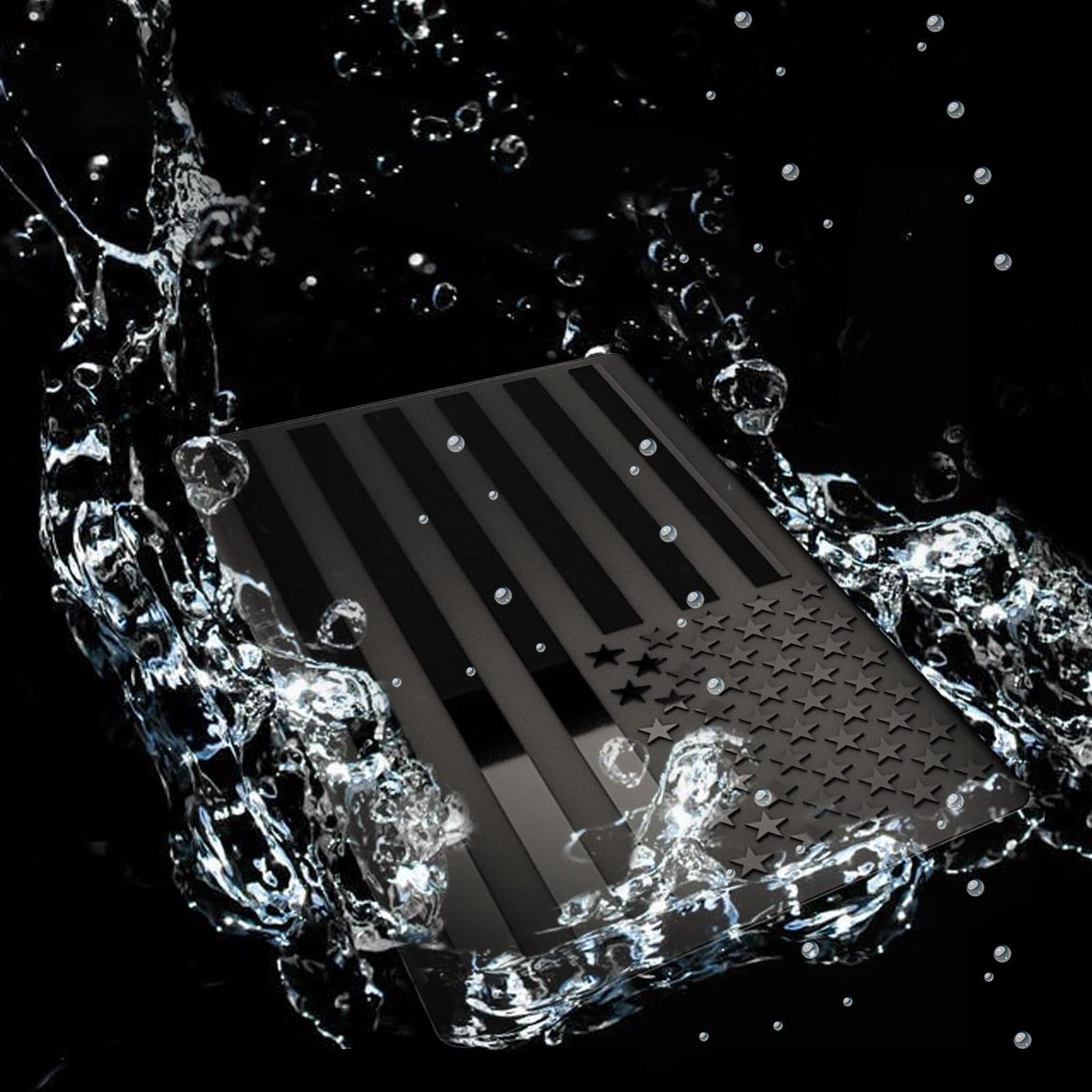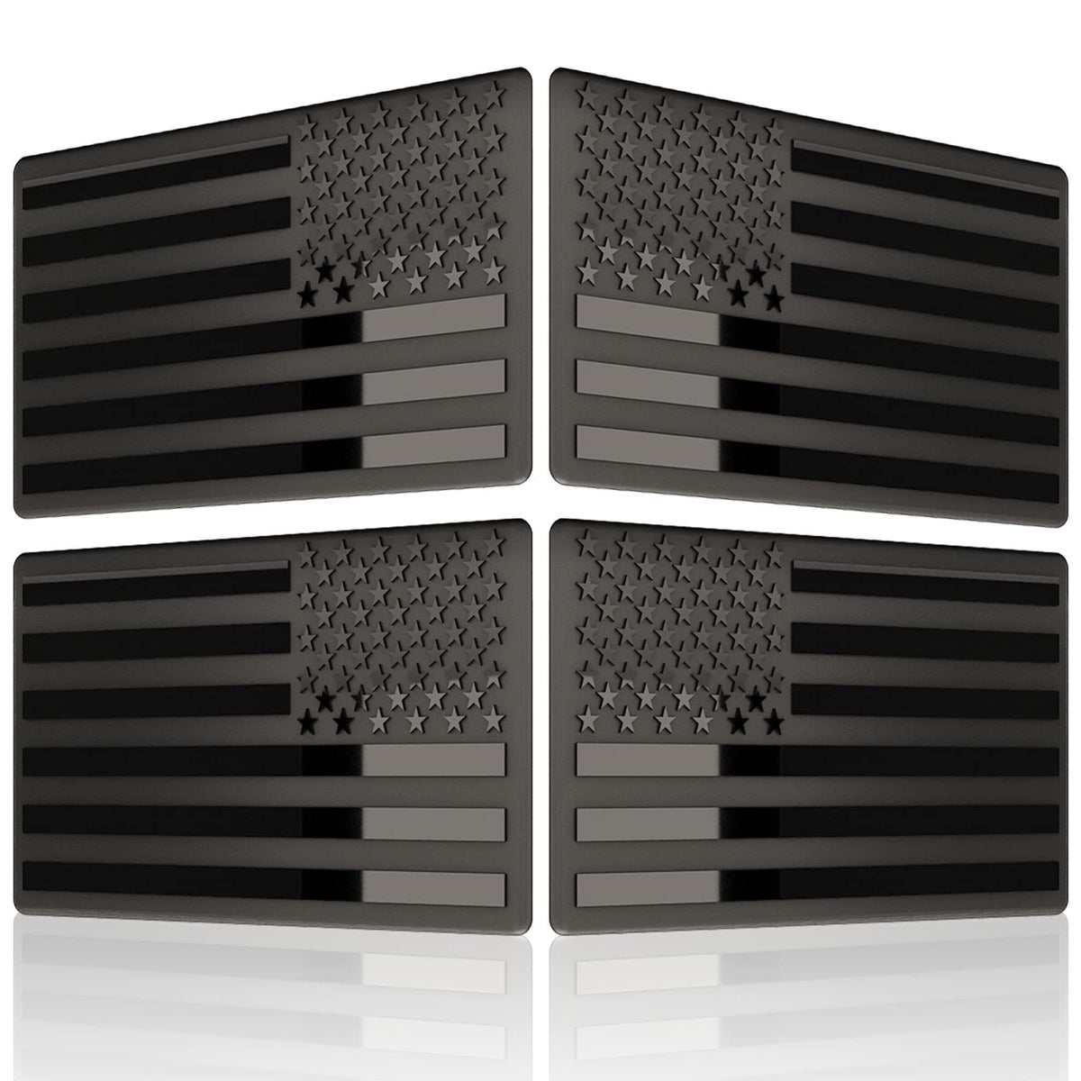 Package included: Each order Includes 4 Flag Badges (2 pcs USA Regular Orientation and 2 pcs USA Reverse Orientation), Each Flag is 5 inches x 3 inches | Embossed 3D Flag: Made of High-Grade Aluminum alloy Material, Matte Black painted background. 3D designed Embossed Stars,Stripes and Matte Black Base makes it stand out and feel the craftsmanship | Strong Adhesive: Top Brand Double-sided tape on the back of emblem for better adhesion for durability. Please ensure the target surface clean and dry with cloth or tissue before applying | MADE TO LAST: Weatherproof, Sun-proof, UV fade resistant, it is guaranteed to stick for a long time. | Widely Application: Used on cars,Golf cart, SUV, Tank,motorcycles,laptops, refrigerators, Show your patriotic love to our great USA and the statement that you will not surrender