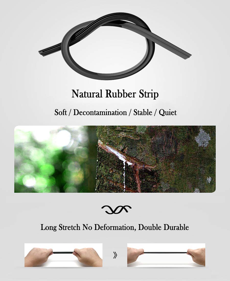 Q: What materials are used in the construction of these wiper blades?A: The EMITHSUN wiper blades are made from high-quality natural rubber and PA66+PBT plastic, offering anti-aging properties and ensuring performance in extreme weather conditions.