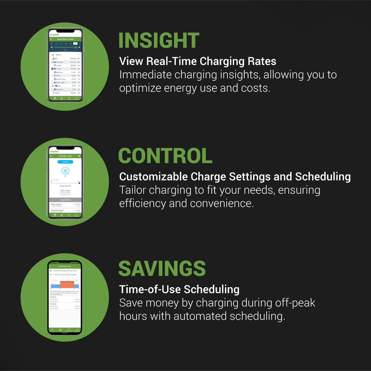Introducing the Emporia Level 2 Electric Vehicle Charger-where cutting-edge technology meets award-winning performance. This charger not only received the highest accolade from Motortrend as the ''Best Smart EV Home Charger'' in 2023 but also set a new industry standard by scoring 99 out of 100 to be named the ''Best Electric Car Charger of 2024'' from industry professionals at InsideEVs.com and State of Charge. Designed with your safety in mind, this UL-listed and ENERGY STAR certified charger meets strict safety standards, including NEC 625, SAE J1772, UL 817, UL 991, UL 2231, UL 2251, and UL 2594. It is built tough with a NEMA Type 4 watertight enclosure, ensuring durability whether installed indoors or outdoors. It comes preconfigured with a NEMA Type 14-50P plug and a 22-inch cable, compliant with 2017 NEC Section 625.17(A)(3). It supports up to 40A charge rates as is, or it can be converted to a hardwired setup to accommodate up to 48A, ensuring it is a fit for every space and requirement. A professional electrician is recommended for installation to achieve the best results and maintain safety standards. Emporias charger is universally compatible with all electric vehicles and plug-in hybrids in North America, including all Tesla models (adapter required). Take advantage of smart charging features with a required 2.4 GHz WiFi connection. Utilize the mobile app available for iPhone, Android, or via a Web Browser to monitor energy use, schedule charging times to benefit from lower utility rates, and manage charging settings remotely. When paired with the Emporia Vue Smart Home Energy Monitor, the system maximizes efficiency by charging with excess solar power and minimizing costs during peak electricity demand. Enjoy peace of mind with a 3-year warranty and check your local area for potential incentives and rebates. Upgrade your EV charging experience with Emporias Level 2 Charger-a smart choice for smart drivers.