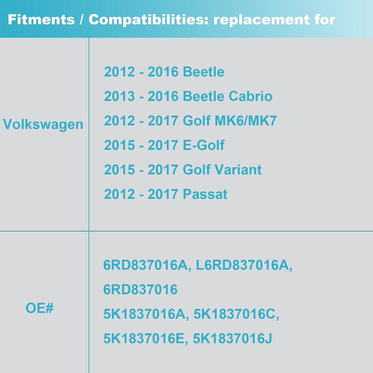 Q: What vehicles are compatible with the Ensun 5K1837016A Door Lock Latch Actuator?A: The Ensun 5K1837016A Door Lock Latch Actuator is compatible with various models including the 2012-2016 Beetle, 2013-2016 Beetle Cabrio, 2012-2017 Golf MK6 and MK7, 2015-2017 E-Golf, 2015-2017 Golf Variant, and the 2012-2017 Passat.