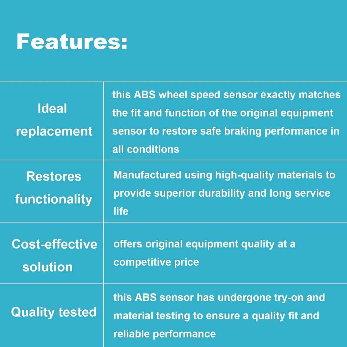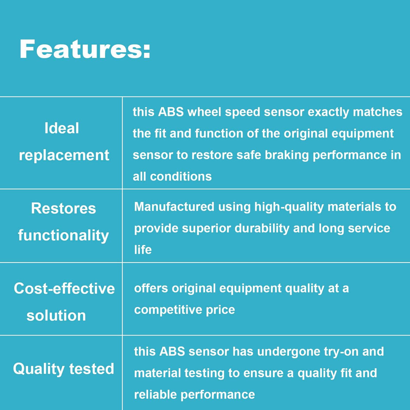 Q: What are the OEM part numbers for the Ensun ABS Wheel Speed Sensor?A: The replacement OEM part numbers for the Ensun ABS Wheel Speed Sensor are Front: 3421165609, 34521164651, 34521165609, and Rear: 34521164370, 34521164652, ensuring you get the correct fit for your BMW.