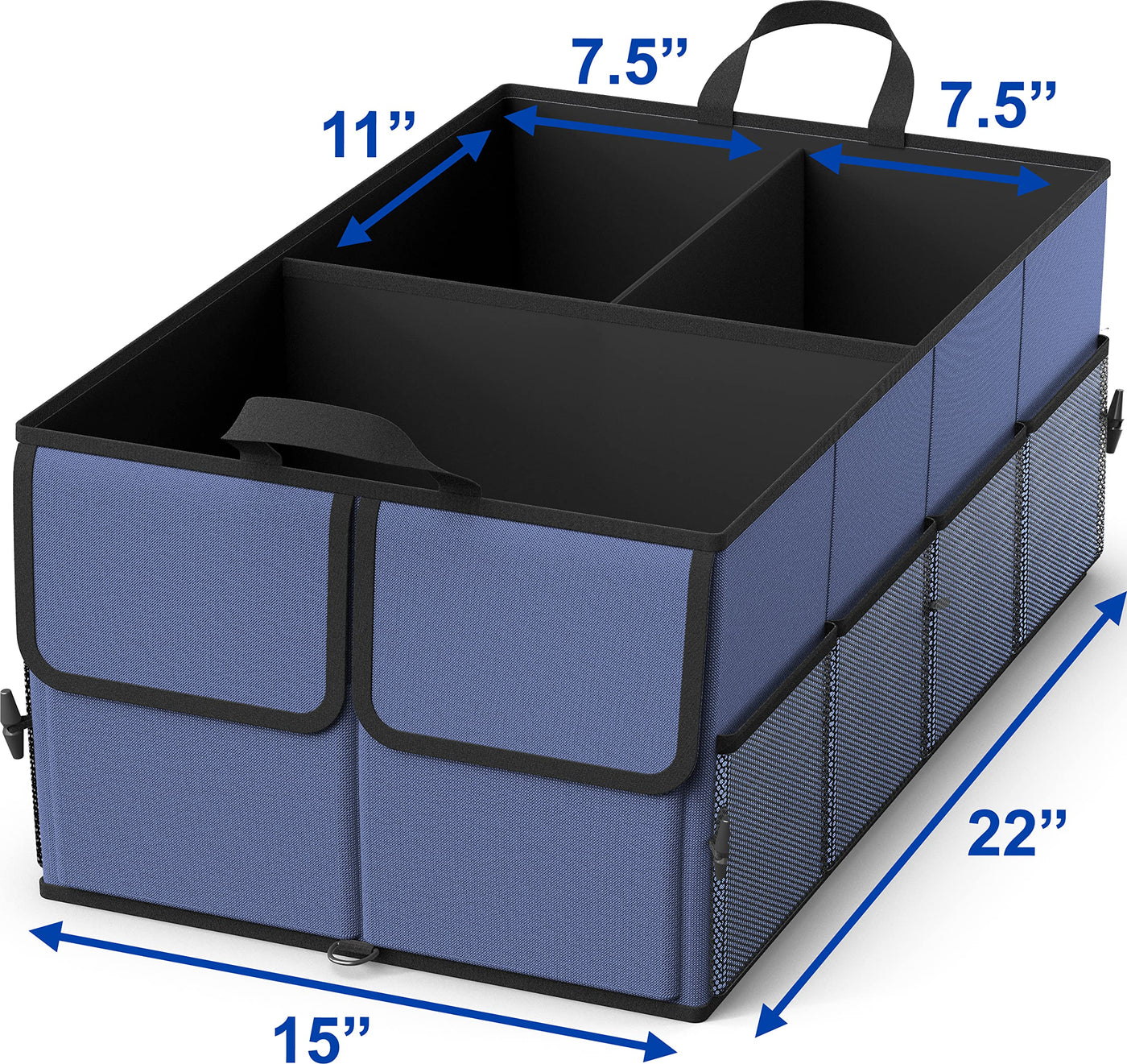 Epauto Foldable Car Trunk Organizer, 3-Compartment With Removable Divider, Blue
