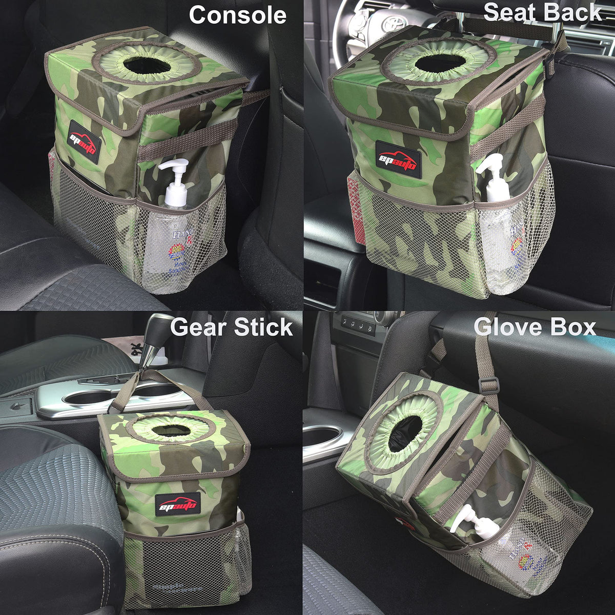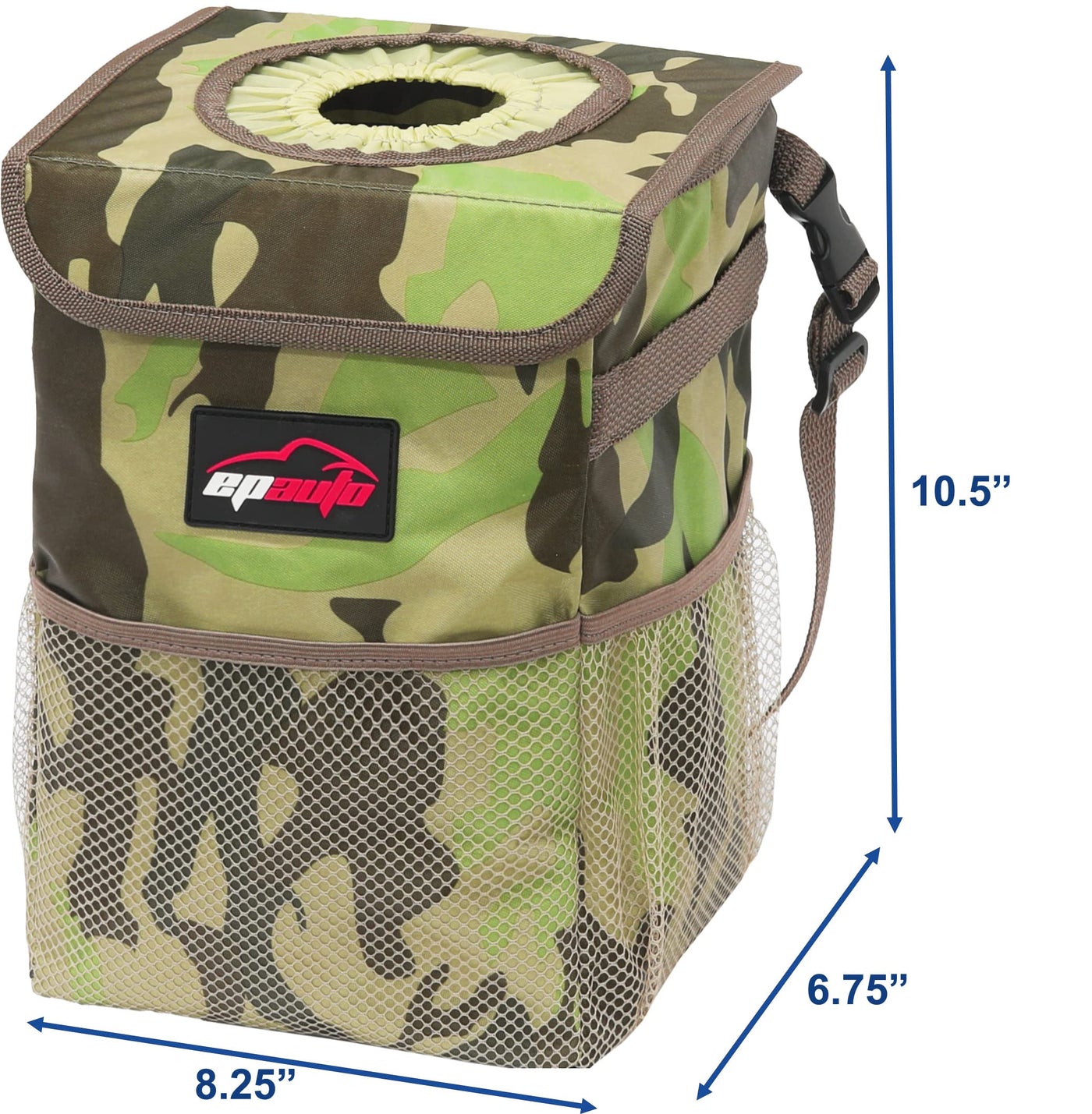 Epauto Waterproof Car Trash Can With Lid And Pockets, Camouflage Green