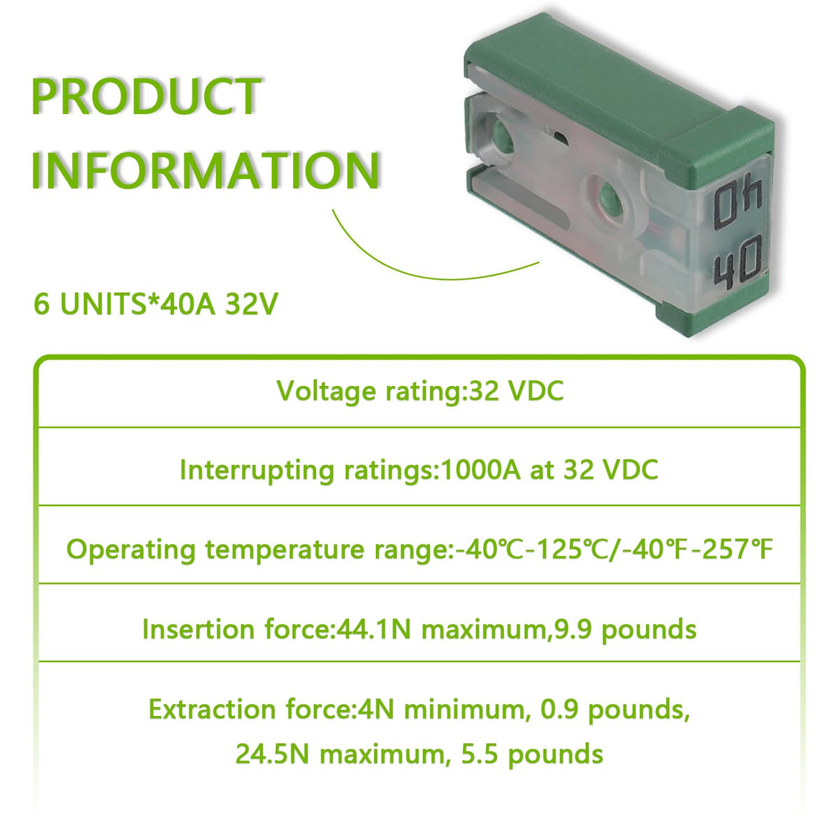 Q: What is the operating temperature range for these fuses?A: The operating temperature range for the EPLZON fuses is -40℃ to 125℃ (-40℉ to 257℉), making them suitable for a wide range of environments.