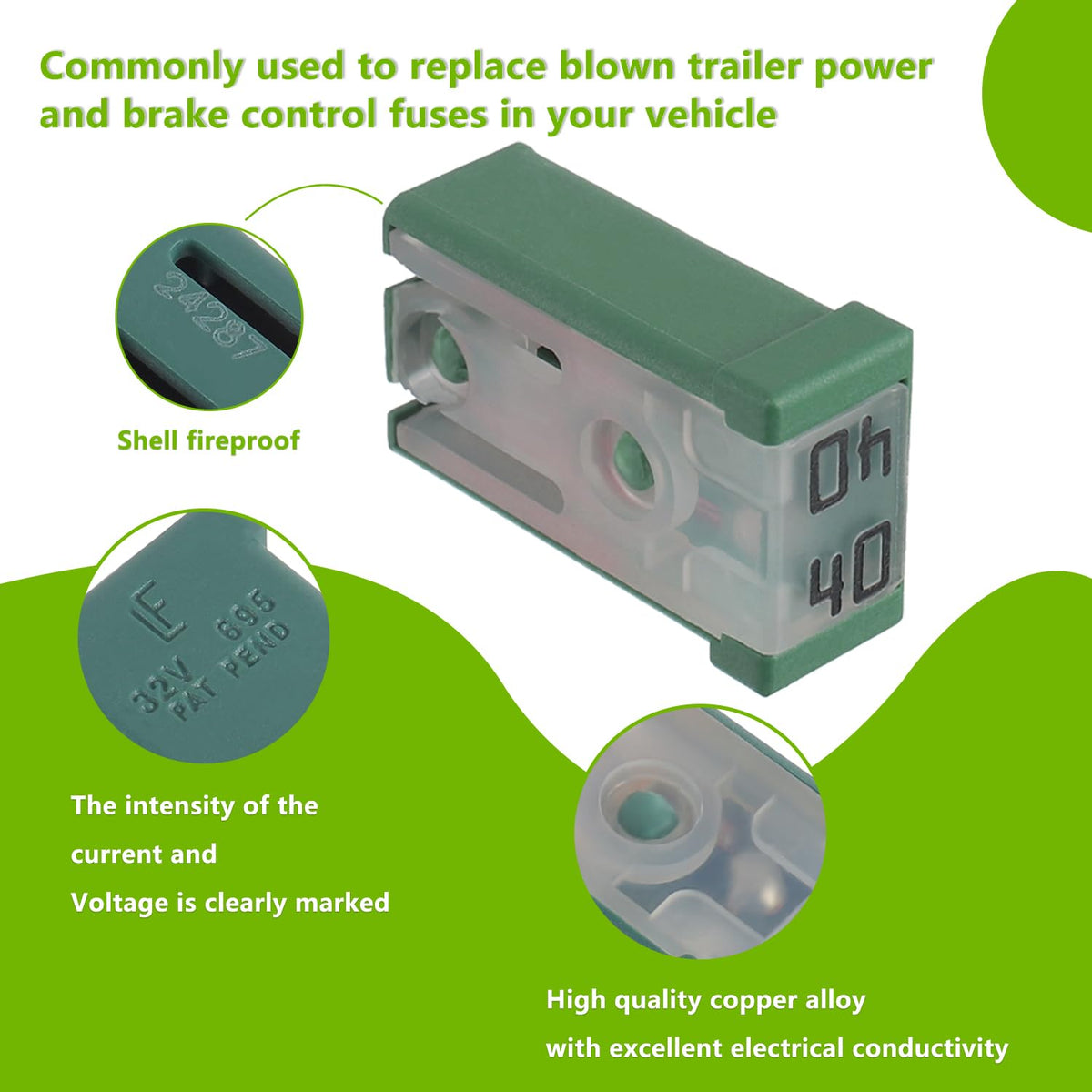Q: What materials are used in the construction of these fuses?A: The EPLZON fuses are made of copper, which provides excellent conductivity and reliability for electrical connections.