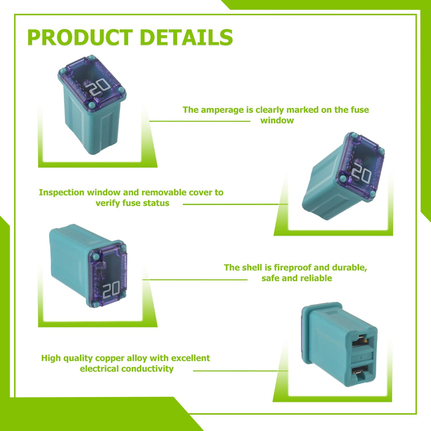 EPLZON 20A 32V FMM MCASE Micro Cartridge Fuses Kit ??Widely used in car truck SUV home boat RV ATV UTV golf cart and more electronic equipment. ??Protects your vehicle and electrical devices from a short circuit or overload;as your automotive wiring and electrical equipment safety solution ??TIPS:Meets the latest demand for smaller (0.59 inches tall), high current circuit protection products being found on new model vehicles Specifications: ??Voltage rating:32 VDC ??Interrupting ratings:1000A at 32 VDC ??Recommended Operating Temp:-40?~120?/-40?~248? ??Insertion force:44.1N maximum,9.9 pounds ??Extraction force:4N minimum, 0.9 pounds,24.5N maximum, 5.5 pounds ??Plating:Sn Plating ??Resistance Value:2.1mO ??Voltage Drop*1:98 mV Package include: 10pcs * 20A FMM MCASE Fuse