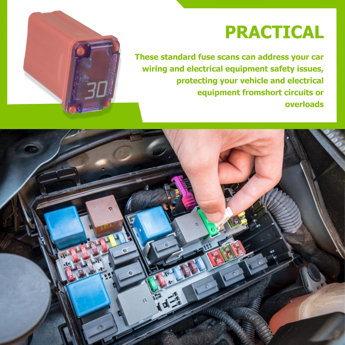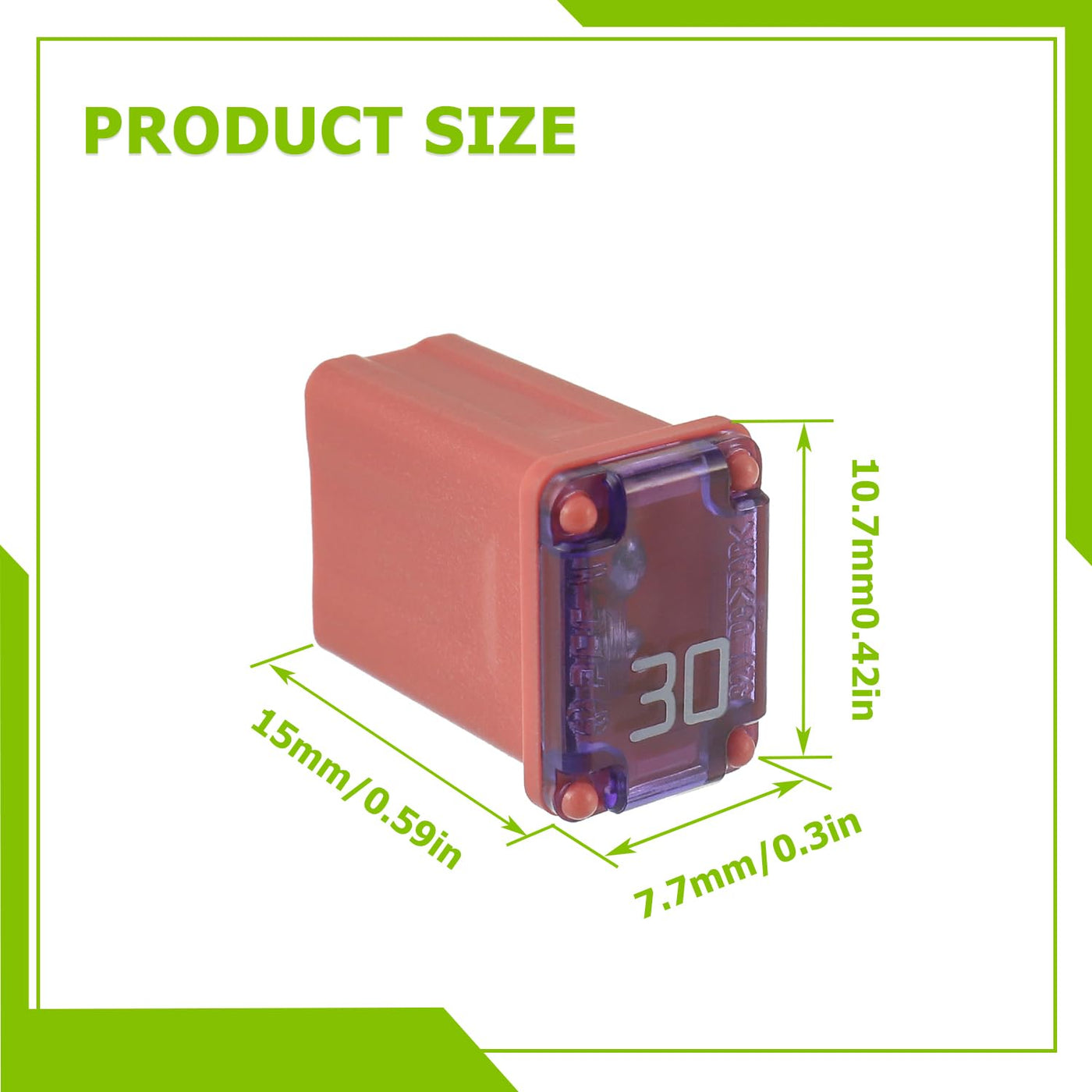 EPLZON 30A 32V FMM MCASE Micro Cartridge Fuses Kit ??Widely used in car truck SUV home boat RV ATV UTV golf cart and more electronic equipment. ??Protects your vehicle and electrical devices from a short circuit or overload;as your automotive wiring and electrical equipment safety solution ??TIPS:Meets the latest demand for smaller (0.59 inches tall), high current circuit protection products being found on new model vehicles Specifications: ??Voltage rating:32 VDC ??Interrupting ratings:1000A at 32 VDC ??Recommended Operating Temp:-40?~120?/-40?~248? ??Insertion force:44.1N maximum,9.9 pounds ??Extraction force:4N minimum, 0.9 pounds,24.5N maximum, 5.5 pounds ??Plating:Sn Plating ??Resistance Value:2.1mO ??Voltage Drop*1:98 mV Package include: 10pcs * 30A FMM MCASE Fuse