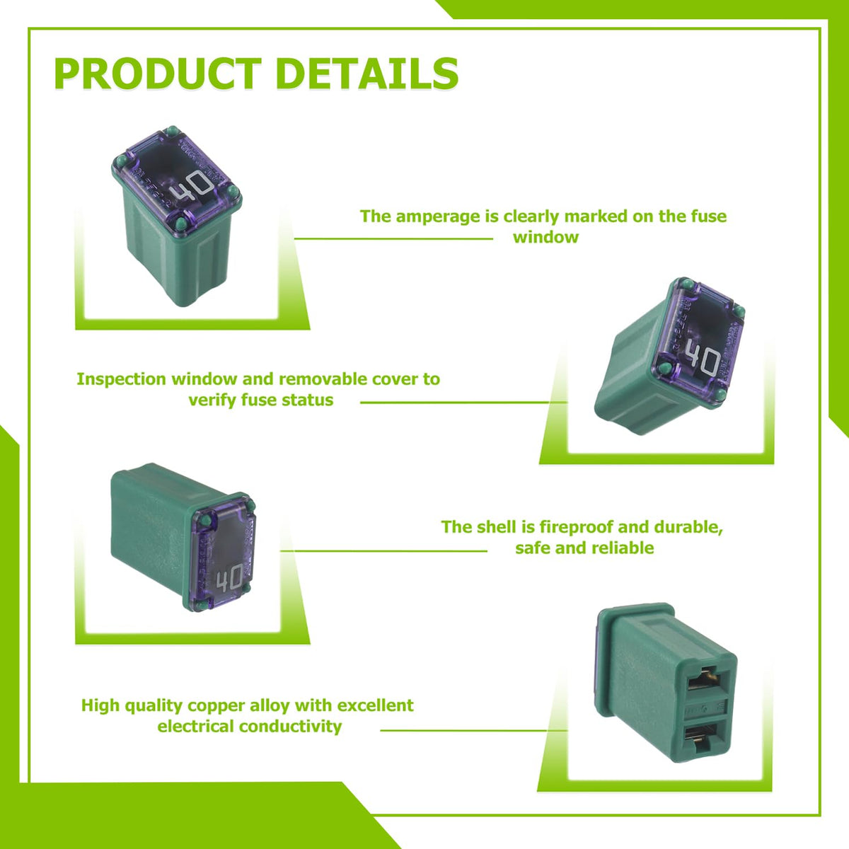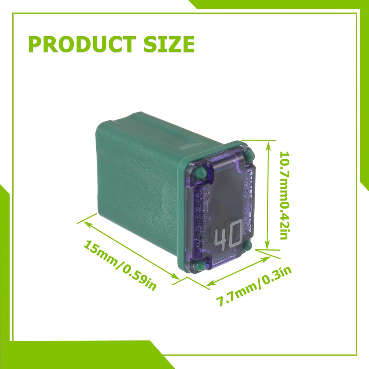 EPLZON 40A 32V FMM MCASE Micro Cartridge Fuses Kit ??Widely used in car truck SUV home boat RV ATV UTV golf cart and more electronic equipment. ??Protects your vehicle and electrical devices from a short circuit or overload;as your automotive wiring and electrical equipment safety solution ??TIPS:Meets the latest demand for smaller (0.59 inches tall), high current circuit protection products being found on new model vehicles Specifications: ??Voltage rating:32 VDC ??Interrupting ratings:1000A at 32 VDC ??Recommended Operating Temp:-40?~120?/-40?~248? ??Insertion force:44.1N maximum,9.9 pounds ??Extraction force:4N minimum, 0.9 pounds,24.5N maximum, 5.5 pounds ??Plating:Sn Plating ??Resistance Value:2.1mO ??Voltage Drop*1:98 mV Package include: 10pcs * 40A FMM MCASE Fuse