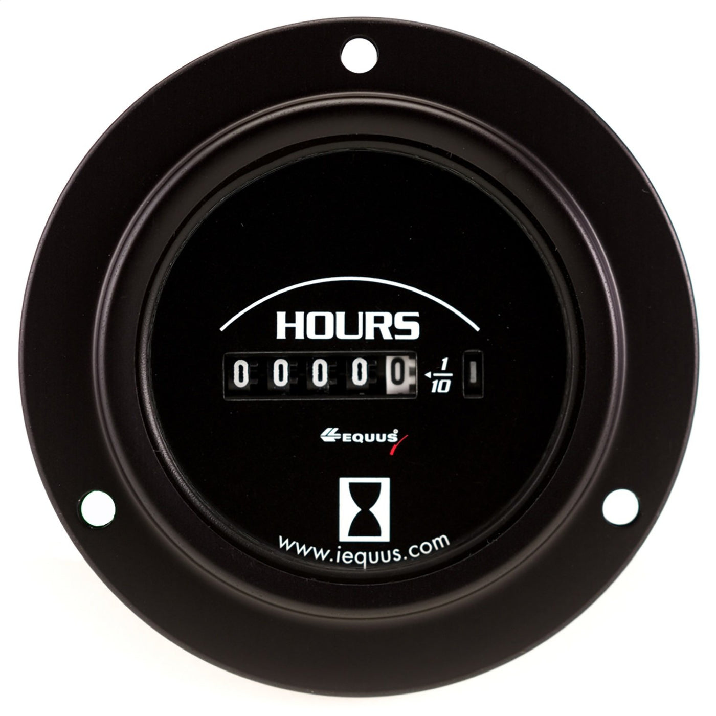 Q: How is the Equus 6210 hourmeter mounted?A: The hourmeter features a rear twist-on ring mount design and includes a flange mount for in-dash installation, allowing for flexible mounting options.