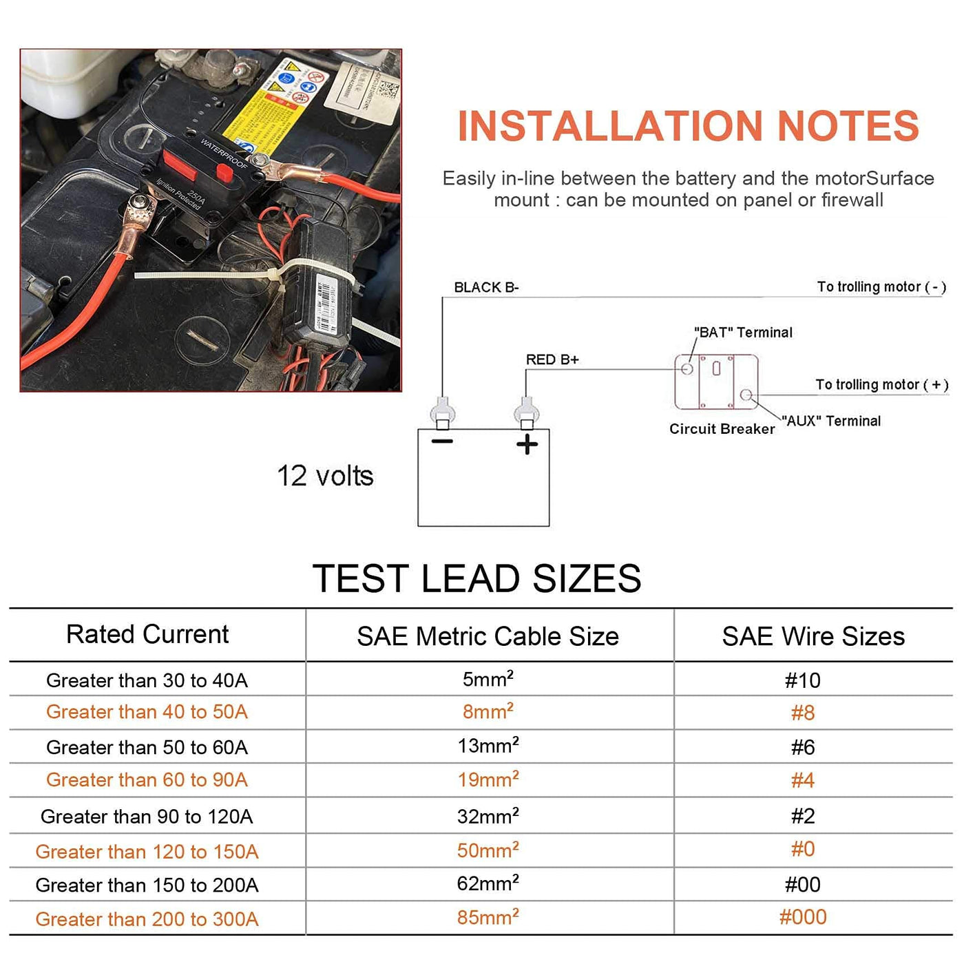 Erayco 12V- 48V DC 80 Amp Circuit Breaker with Manual Reset Features: -Stops power surges from damaging your amps ,protects your trolling motor from electrical damage. -Mount on panel or firewall unique push button reset can also be used as a kill switch -No more spending money on replacing fuses -Unique push button reset can also be used as a kill switch -Good conductivity and craftsmanship, high temperature pressure -Application: Typically used in auxiliary and accessory circuits for Boat, Trucks, Buses, Marine, RV and ATV applications. Also can used as an on/off button switch for the battery or DC sound system. Specifications: -Rated current: 80 Amp -Rated voltage: 12-48V DC Maximum -Breaking capacity: 3000A @ 48 VDC -Manual Reset Circuit Breaker -Red manual reset button -Surface Mount, protective stud insulator included -Ambient temperature: -32 C to 82 C (-25 F to 180 F) -Storage Temperature: -34 C to 149 C (-30F to 300F ) Size: (LxWxH) 74 x 49 x 44 mm /2.9 x 1.9 x1.7 inch Package Includes: 1 x 80 Amp Circuit Breaker with Manual Reset 2 x 6AWG-1/4'' Wire Lugs 4 x M6 Copper Washers2 x Self Tapping Screws Notes: 1.Due to the different monitor and light effect, the actual color of the item might be slightly different from the color showed on the pictures. 2.Please allow 1-3cm measuring deviation due to manual measurement.