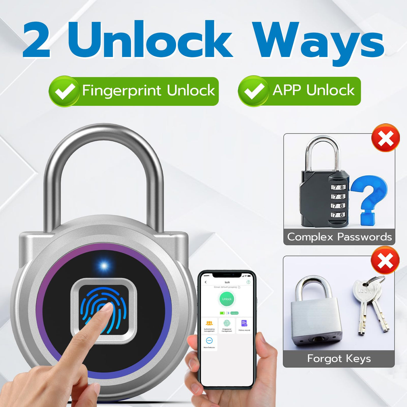 Q: Is the smart padlock compatible with smartphones?A: Yes, the Eseesmart Fingerprint Padlock integrates with a mobile app, enabling users to unlock the padlock remotely and grant access to family, friends, or colleagues directly from their smartphones.