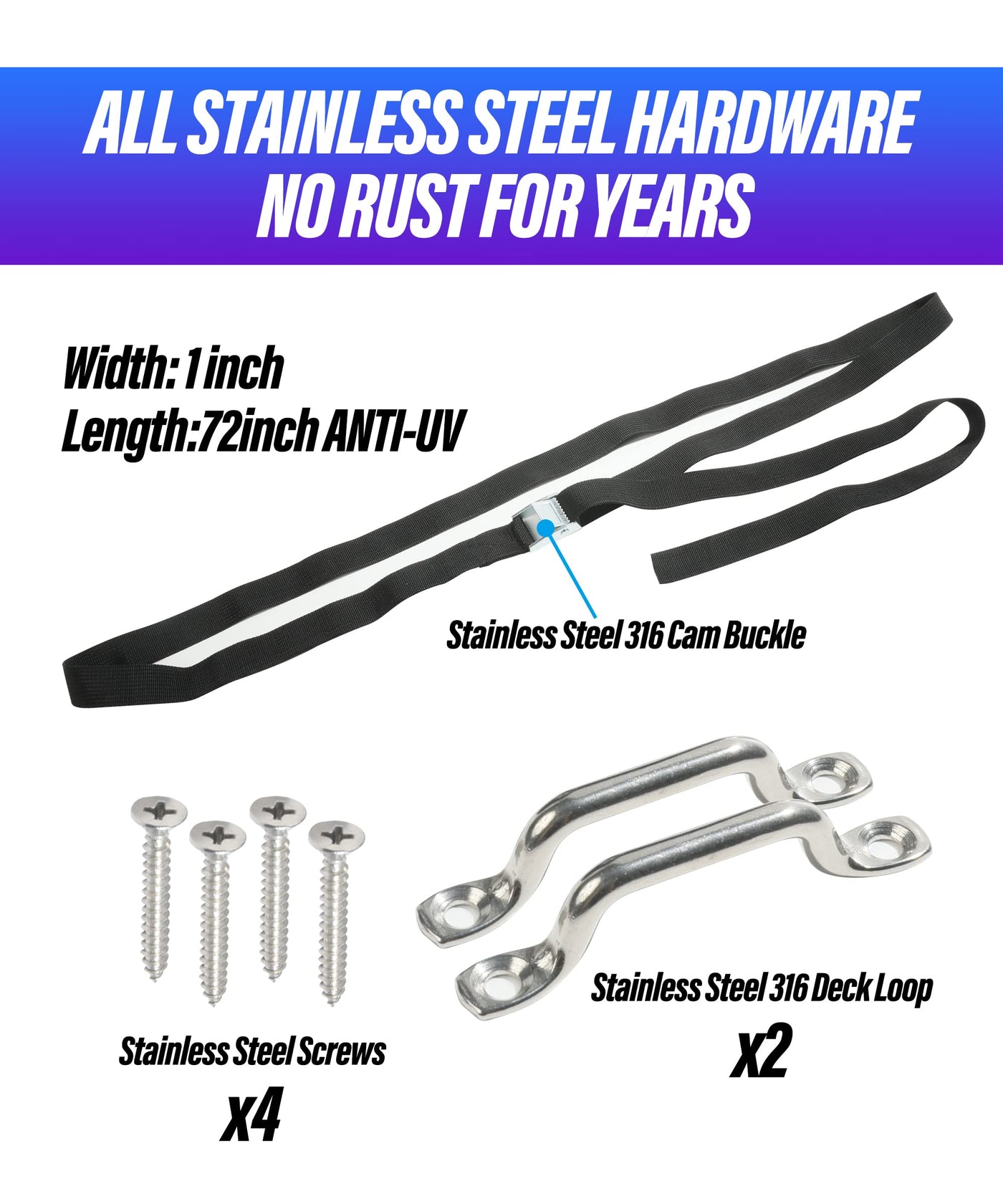 Esewalas 78'' Battery Tie Hold Down Strap,Battery Box Hold Down Lashing Strap With Stainless Steel Cam Buckle,Battery Tie Down Strap Kit With Deck Loop Mounts And Ss Screws