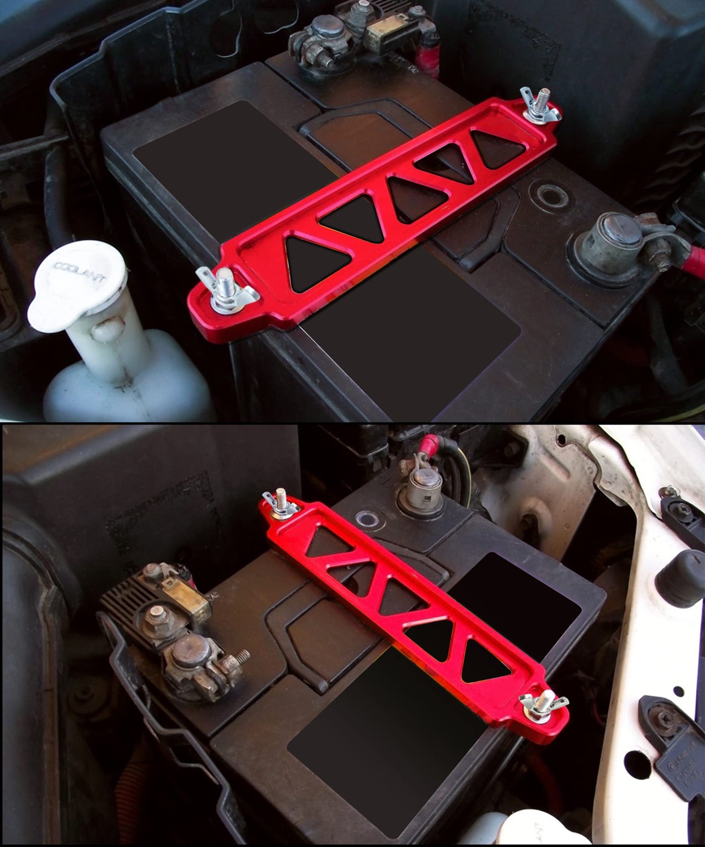 Esewalas Aluminum Alloy Battery Hold Down Bracket,Car Battery Holder Kit With 10In J Bolts,Car Battery Lock Down,Battery Tie Dow