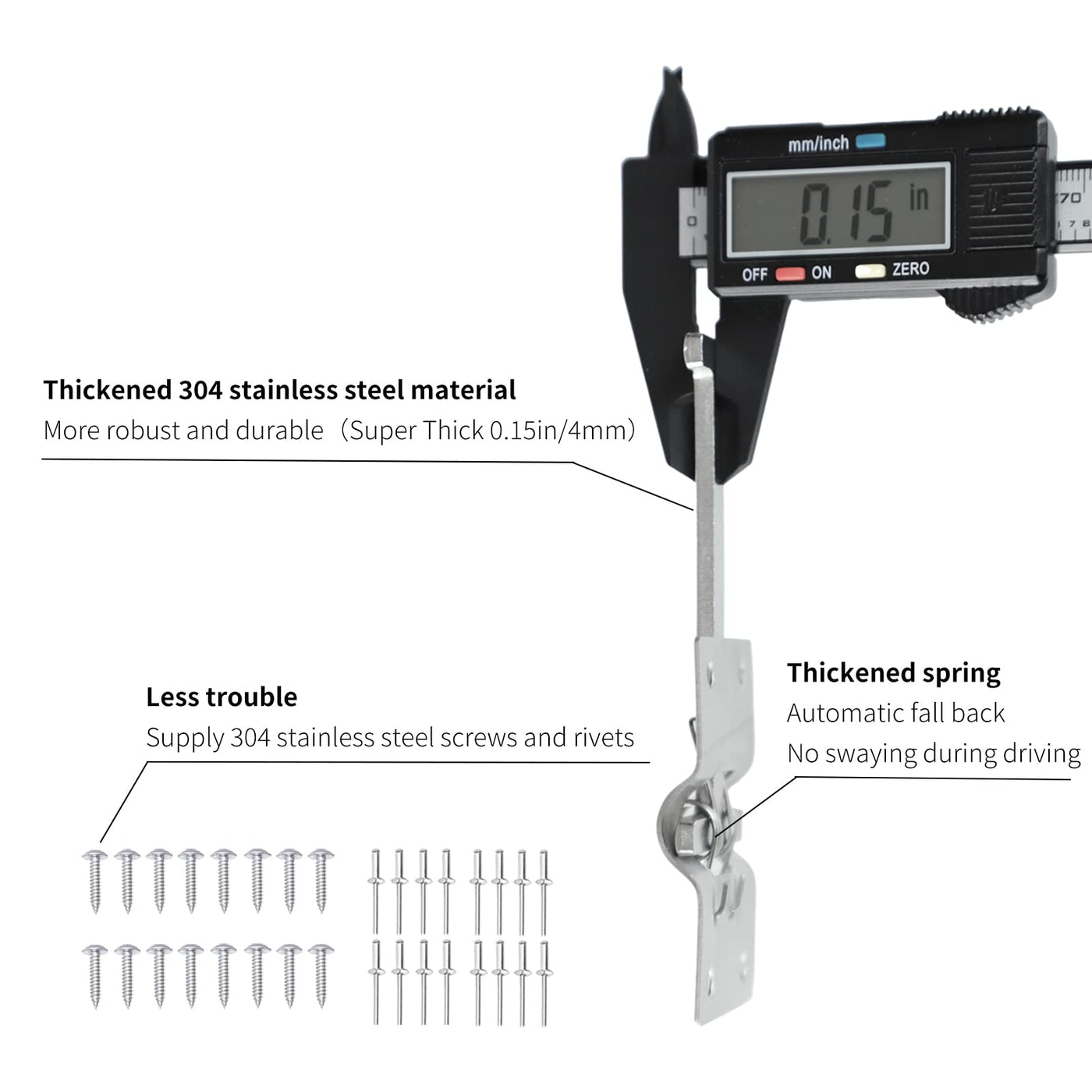 We are committed to providing users with high quality automotive accessories and offer 1 year warranty service for our products. If you encounter any quality problems during use, you can contact us by email at any time! We will be happy to serve you. There are matching ;screws ;in our product packaging, so you dont need to buy screws separately. This trailer door holder build with High-quality 304 stainless steel nbsp;material , You can use trailer door latch with confidence for several years. It can keep the door open safely