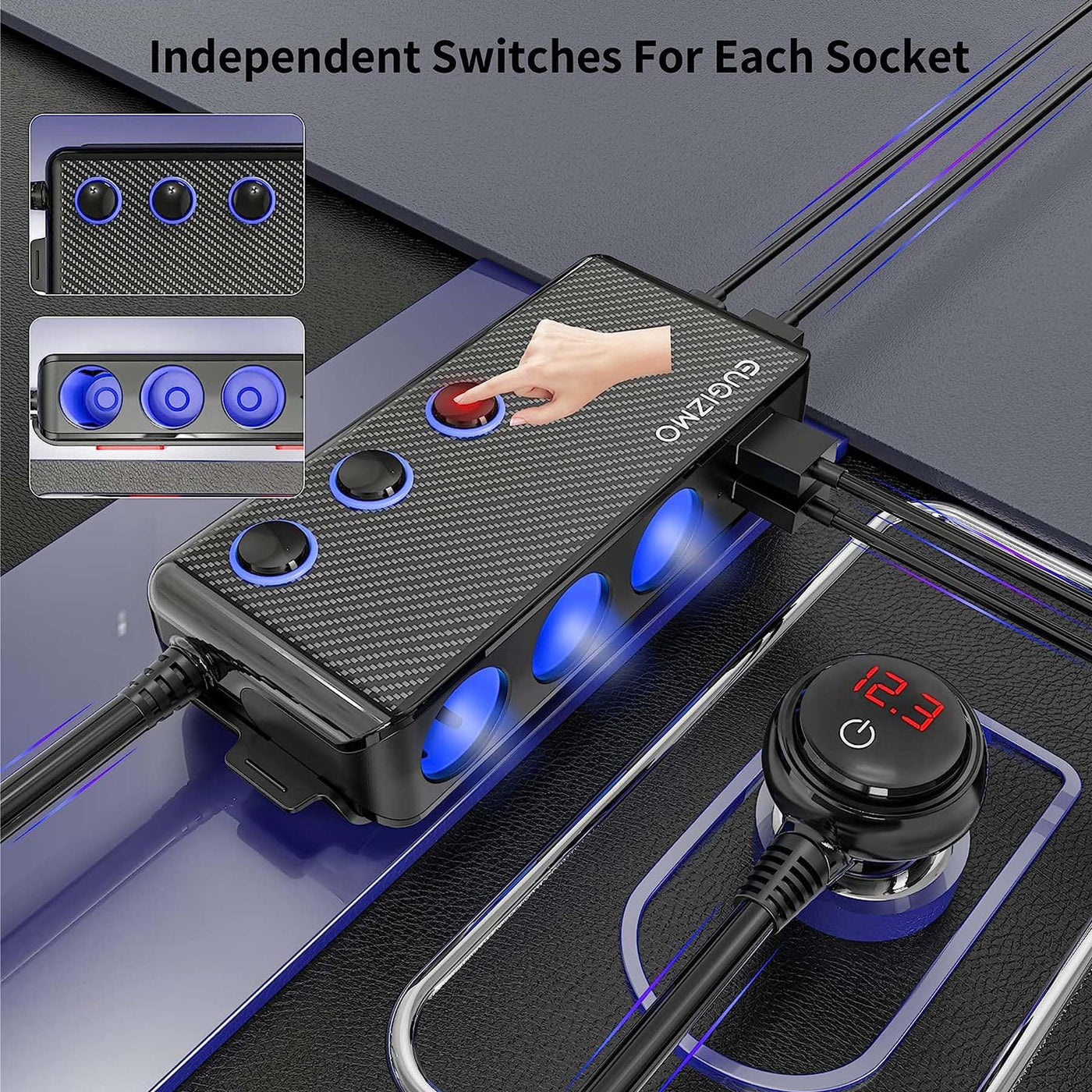 Eugizmo 200W Car Cigarette Lighter Plug Splitter Adapter 3 Socket Car Charger With Plug Outlet & Led Voltage Display & Independent Switches?Key Features??7 In 1 Cigarette Lighter Splitter? Equipped With 4 Charging Ports And 3 Car Cigarette Lighter Sockets, Provides 200W Power In Total;?Qc3.0 Super Fast Charging? The Cigarette Lighter Adapter Built-In Smart Ic Chip, With 1X Pd 30W & 1Pc Qc3.0 (18W) Charging Port To Maximize Your Device Charging Speed, Providing 5X Faster Than Normal Car Phone Chargers;?With Led Voltage Display? This Car Cigarette Lighter With The Real-Time Led Voltage Display To Monitor The Output Of The Car Battery, Keeping Abreast Of Car Battery Health In Real Time;?With Independent Power Switches? The 12 Volt Splitter Cigarette Lighter Extension Cord Is Equipped With 3 Independent On/Off Switches For Each Cigarette Socket, Makes Charging More Convenient;?Wide Compatibility & Application? This Cigarette Lighter Usb Charger Is Widely Used In 12-24V Vehicles, Like Suv, Truck, Mpv, Rv, Off-Road And Other Vehicles. And Applied To A Variety Of Automobile Gadgets, Including Refrigerators, Humidifiers, Pumps, Seat Heater/ Coolers, Gps, Dash Cam And Sat Navs, Etc. Besides, It'S Compatible With Most Of Usb Power Devices, Including Laptops, Kindles, Ipads, Macbook, Air Pods, Samsung, Iphones, Motorola, Tcl, Lg, Sony, Android Phones, Etc;?Package Includes? 1 X Eugizmo Car Charger With Plug Outlet 2 X Sticky Sticker 1 X User Manual