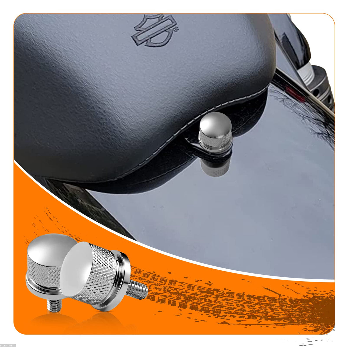 Compatibility: Our Rear Seat Bolt fits for Harley Sportster, Wide Glide, Street Bob, Road King, Fatbob, Streetbob, Softail, Dyna, Street Glide, Road Glide, Ultra Glide, Touring 1996-2022 and other motorcycle with 1/4inch-20 thread.NOTE: Mounting rear seat to top fender, not work with solo seats or side mount seats. A very small number of models use 1/4''-28 which won't work with this seat bolt. SIMPLE STYLISH DESIGN: This seat screw is great replacement for your old seat bolt.Classic black or plated colours can perfectly match all body colours. The simple solid color design is designed to highlight the brilliance of your whole bike, which is called a small screw, a big change. EASY TO INSTALL: The seat screw for harley will looks cool and great on your motorcycle. Perfect seat screw to replace your stock one or just a gift to your motorcycle riding lovers because the rear seat nut for harley is very easy to use and install. Designed for easy to grasp and quick mount or remove, no tools required, you could just install it by yourself. DURABLE MATERIAL: Seat bolt screw for harley is made of heavy duty CNC billet aluminum and the knurled design around the screw can provide better wear and scratch resistance for the rear seat bolt and plus heavy duty resistant stainless steel stud for long-term use.The surface of the rear seat screw for harley dyna has two layers of thickened paint to prevent paint peeling. PREMIUM SEAT SCREW: Package content: 1 x seat bolt for harley. This sportster seat screw has a small size but has a large effect, which is not only a perfect replacement for the factory screw, but also the first choice for durable quality.Return and exchange within one year from the date of purchase.