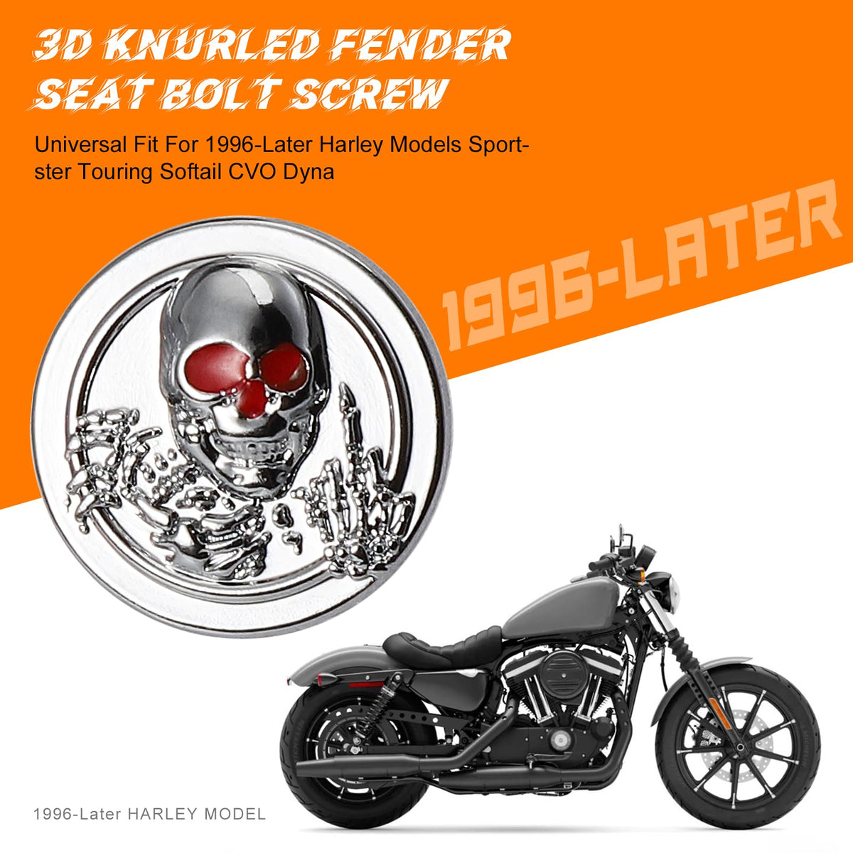 Eumti Chrome 3D Skull Pattern Fender Bolts Kit 1/4-20 Red Eyes Compatible with Harley Davidson Touring Softail Dyna Sportster 1996-2023