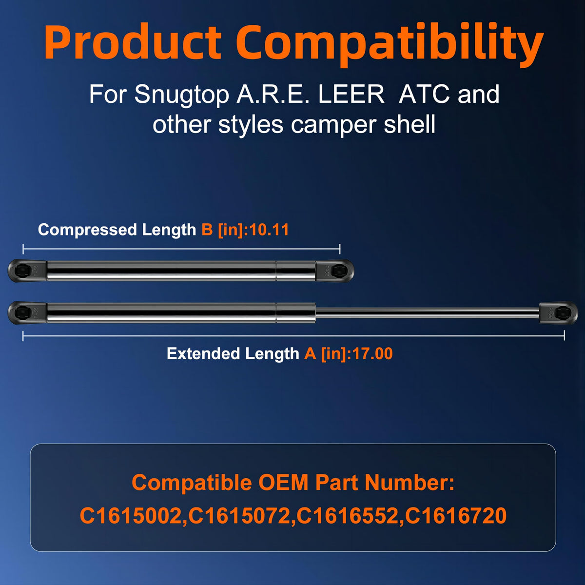 Euplokeer C16-15002 Gsni-5200-90 17In 90Lb/401N Gas Shock Strut Lift Support For Leer Are Camper Shell Window, Snugtop Truck Pic