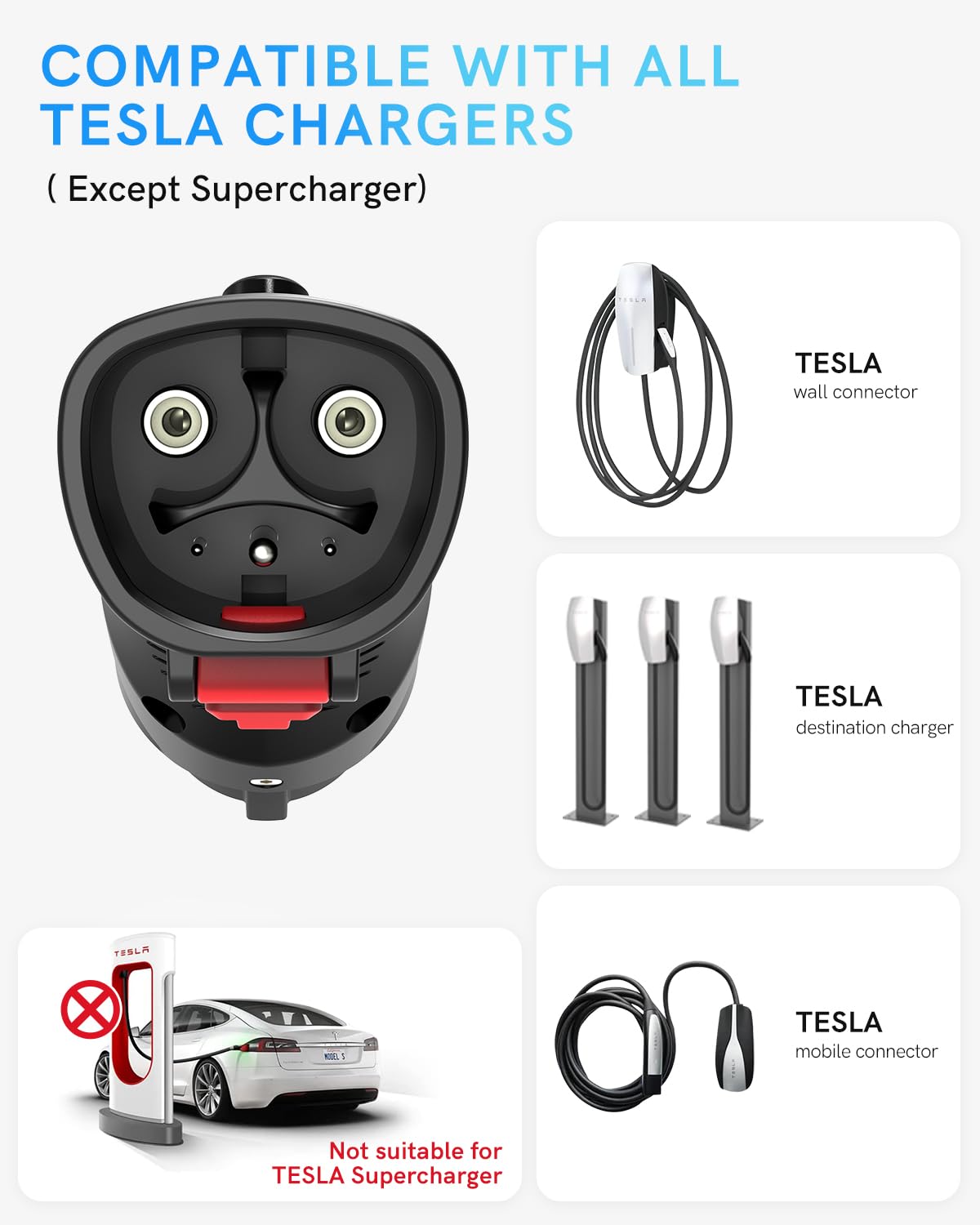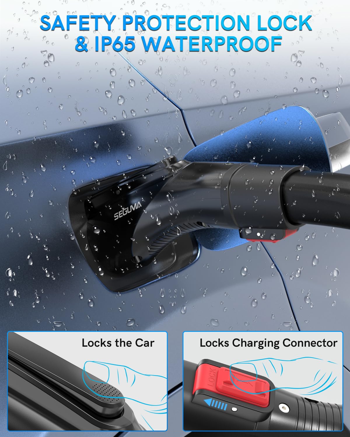 'This tesla to j1772 adapter is a perfect tesla accessory for Tesla customers who own a different type of electric vehicle. It's especially useful if you already have a 32A Tesla mobile charger, a 48A Tesla wall charger, a 110V Tesla charger, or a 240V Tesla connector, and you want to charge your non-Tesla vehicle, such as a Ford F150. With this SEGUMA tesla to J1772 converter, there's no need to get a Ford wall charger adapter or any other EV home charger. Simply use your Tesla charging cord in combination with this converter to charge your non-Tesla vehicle. If you own a non-tesla electric vehicle like toyota, hyundai, volvo, vw id4, ri-vian, with this tesle to j1772 adaptor, you'll have access to more than 40,000+ tesla charger stations including public tesla level 2 destination charger, level 1 or level 2 mobile charger, but this adapter cannot work with level 3 charger station or the tesla supercharger. Why choose Seguma nacs to j1772 adapter? 1. seguma level 2 J1772 adapter supports max 80 Amps current and 250V voltage. You can fully charge in a few hours. Charging power rates up to 20kW, provides 4-7 times faster speed than level 1 charger, you can fully charge your J1772 vehicles in a matter of hours with the ev charger adapter 2. with this tesl-a charger converter, you'll have access to more than 40,000+ tesla charger stations; this is a charging for bz4x, volvo,vw id 4 3. This jplug tesle adapter work in any climate includes the -122? or 22? environment 4. Seamless Integration: Effortlessly connect the model y adapter to your tesla vehicle, ensuring a secure and reliable charging connection. 6. Easy to Use: Quick setup and hassle-free charging on non-Tesla charging infrastructure. 7. Durable and Long-Lasting: Engineered with durability in mind, the adapter is built to withstand regular use and provide lasting performance. 8. High quality material: equipped with PC and PA66 25% Glass fiber material, 5m copper plated silver, with IP65 rating Please note: It's 50 amp charger adapter for tesla connect with tesla chargers. cannot connect with the level 2 ev charger from charge point, ev go, shock flo, and i-lectron''