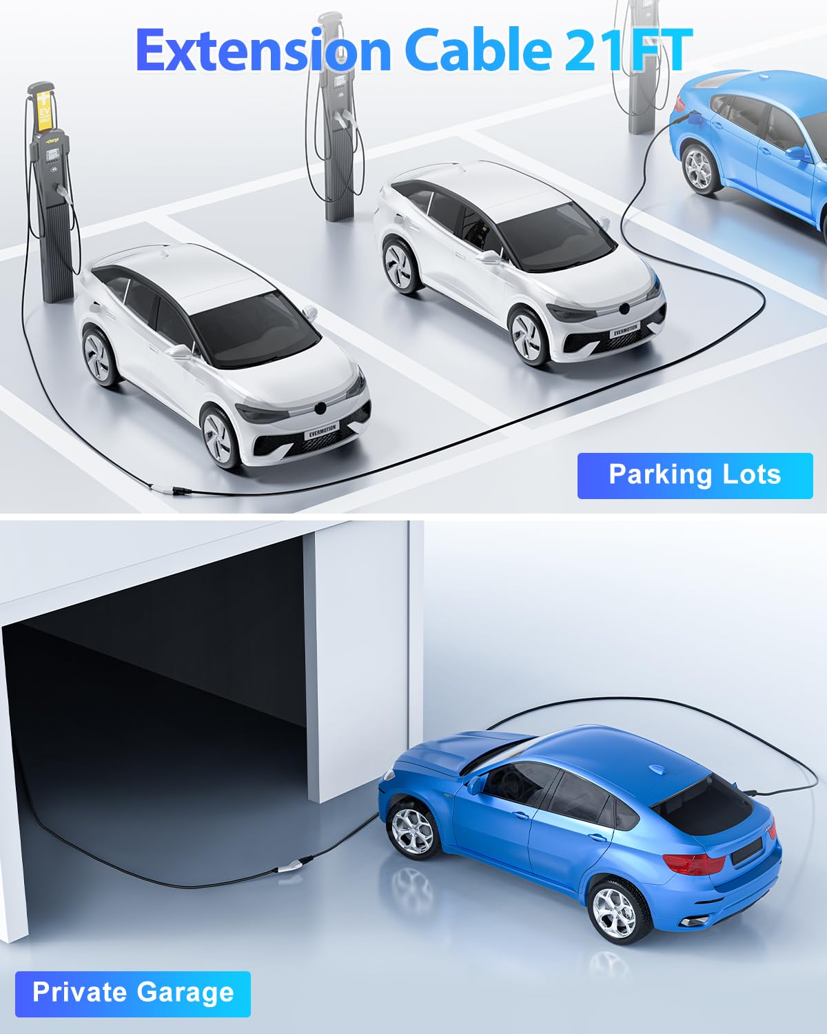 EVDANCE EV Charger Extension Cable, J1772 Extension Cable 50A 21FT Charging Cord for Electric Vehicle 110V-240V Compatible for A