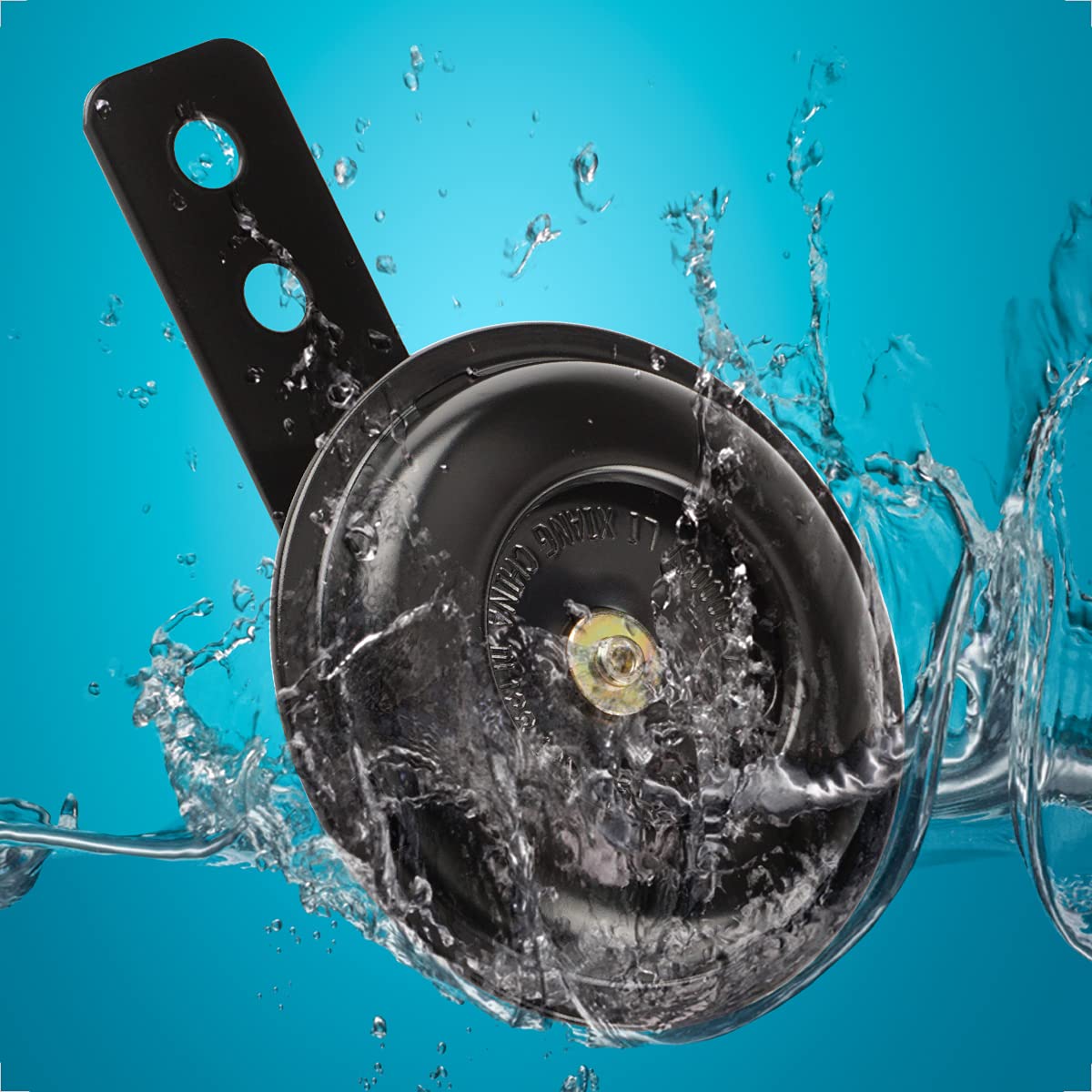 The package includes 2 horns. Coated metal body, high-pitched horn, waterproof. | Compatibility: Suitable for most scooters, lightweight motorcycles, all-terrain vehicles, and motorcycles. Please confirm the voltage is 12V before purchasing. | E-Mark: High-quality horns ensure that your warning sound can be widely heard in traffic, enhancing driving safety. | Specifications: DC12V voltage, 1.5A current, 90-110dB volume. | Easy installation: Can be easily installed or replaced without the need for complex installations.