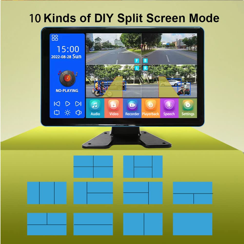 Ips Screen Excellent 178 Full-View Display Technology 178 Wider Viewing Angles Faster Response Times Better Color/Contrast Than Many Va And Tn Panels Outstanding Color Accuracy And Screen Consistency * Support To Play Music And Mp4 Video From Usb. Mirrorlink * Driver Can Use Applications From His Smartphone On A Monitor Screen. ( Only Support Android System ). * Just Connect The Usb Cable And Download The App Tcplay, You Can Transfer Data Between The Screen And Mobile Phone. Support Two-Way Interconnection, Also The Screen Can Give Power To The Mobile Phone When Turn On The Screen. Split Screen * Can Display 2 ~ 4 Screens At The Same Time * 10 Kinds Diy The Screen Display Mode, Can Show Front View, Rear View, Left View And Right View Separately Or Together. Loop Recording * Parking Video Recording And Playback, It Will Record The Parking Video In 24/7 Mode When You Are Not Inside Of The Car. The Storage Support Up To 256Gb. Automatically Overwrite The Previous Recordings With New Files When The Memory Card Is Full. * Adopt Time-Lapse Video Recording Technology, Save More Space And No Need To Format The Memory Card Often. (Note: Time-Lapse Video Recording Is Only Available During Parking Period, The Monitor Will Always Support Normal Video Recording During Driving.) * H.265 (Hevc) Doubles The Coding Efficiency Compared With Its Predecessor H.264. That Means It Saves More Storage Space, Store More Videos And The Videos Quality Are Smoother. Bluetooth-Compatible * The Monitor Can Connect To Your Mobile Phone Via Bluetooth. Support To Play Music And Mp4 Video From Usb And Mobile Phone. Ahd1080P Camera * With Ahd 1080P Camera Lens, The Quality Of Shooting Video Is Delicate And Clear Even In Low Light Conditions At Night?