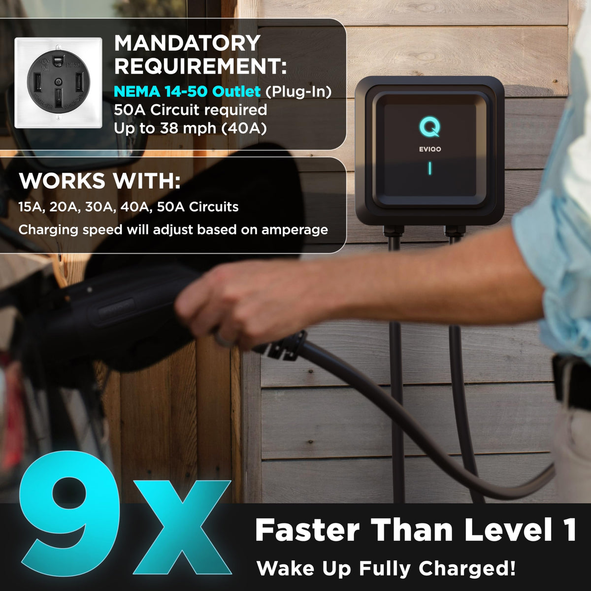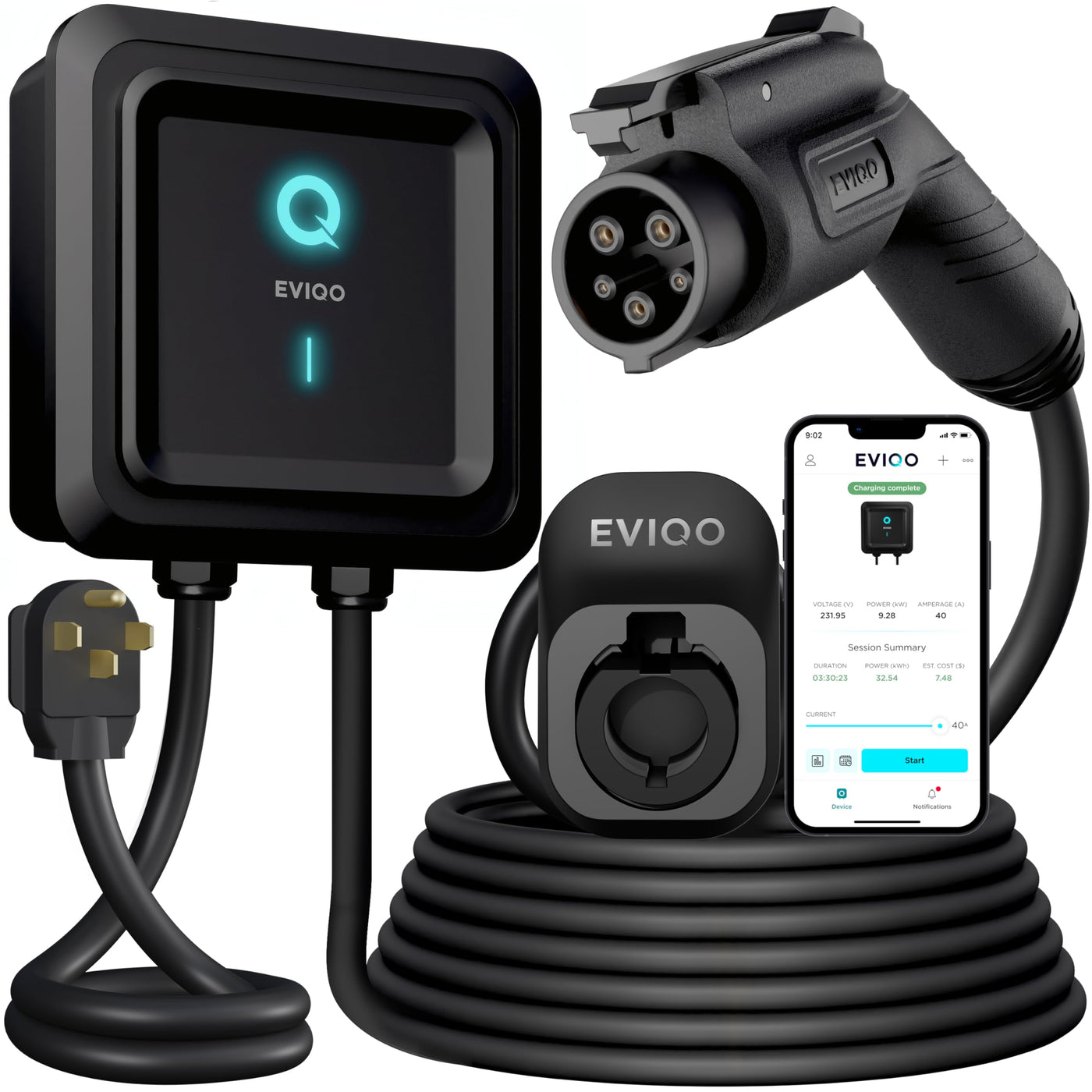 Eviqo Level 2 Ev Charger - 40 Amp (9.6 Kw) 240V - Wall Ev Charger Level 2, Nema 14-50 Plug, J1772 25' Cable, Enhanced Wi-Fi - Ul