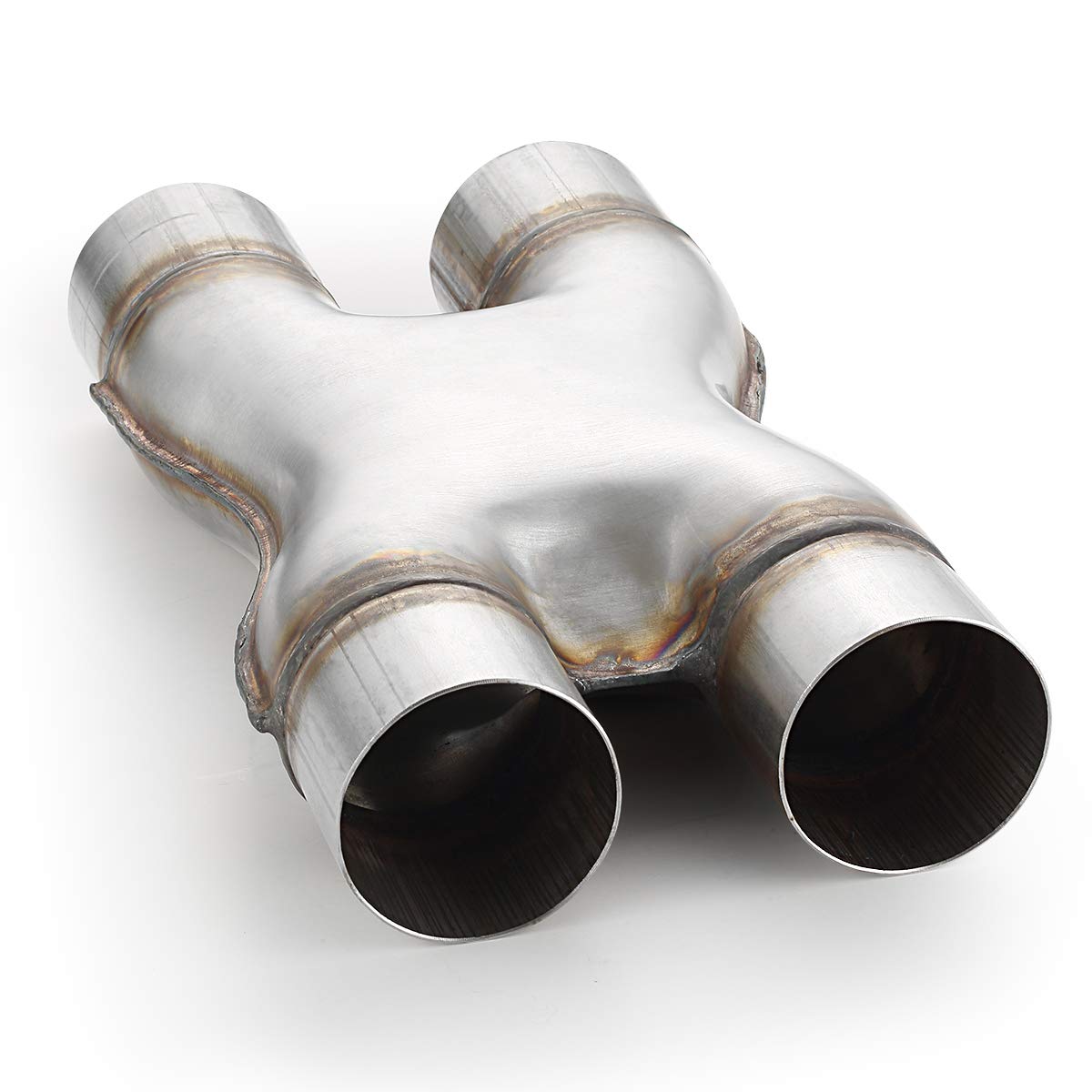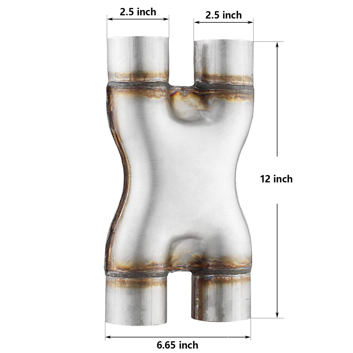 ? Specification: ? Inlet Diameter: Dual 2.5 inch ? Outlet Diameter: Dual 2.5 inch ? Overall Length: 12 inch ? Material: Stainless Steel ? Installation: Weld On ? Material: High quality stainless steel infused with anti-corrosive agents doesn't rust and is more durable. ? Structure: The x-pipe allows exhaust pressure to equalize between the two sides of an engine and exhaust system. Add performance to exhaust system. ? Installation: It is recommended to go to a nearby shop for professional installation. ? Service: Whether it's an order problem or a product problem, please feel free to contact us. ? Note: Please check the size of your vehicles pipe before purchasing. ? Package Includes: 1 pc Exhaust X Pipe