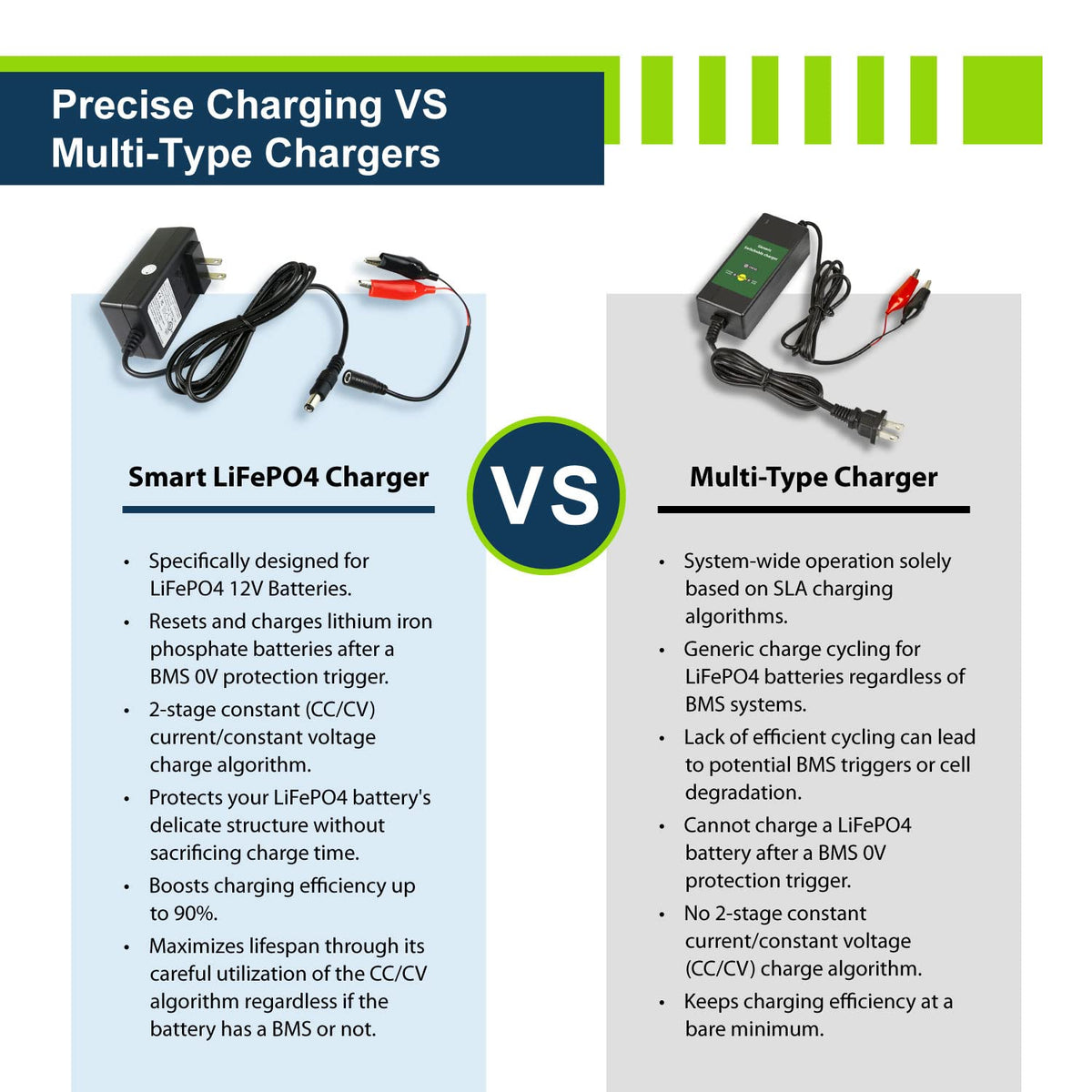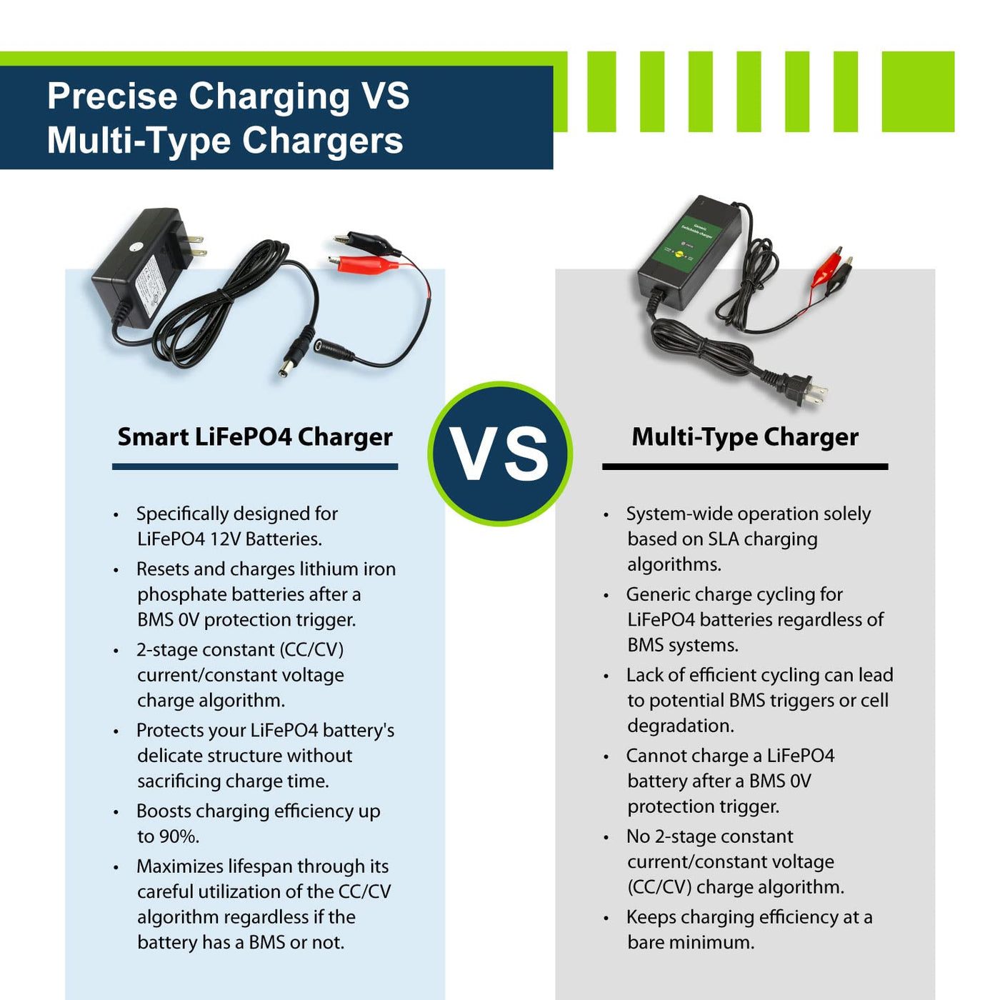 Lithium Iron Phosphate is the next generation of energy storage and with a new age comes new technology with new problems. ExpertPower's LiFePO4 charger is the answer to these new problems. Programmed to LiFePO4's delicate architecture, the charger is guaranteed to be the perfect mechanism for charging your LiFePO4 batteries without worrying about undercharging or overcharging regardless if your battery has a battery management system. It plays to LiFePO4's advantages by utilizing the chemistry's ability to withstand high amounts of current without compromising battery health and ensuring complete usability. Perfect for ours and all others 12V LiFePO4 batteries 2-amp hours and above.