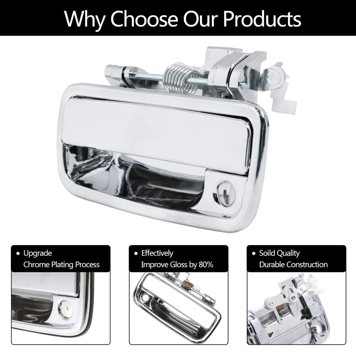 Exterior Door Handle, Compatible with 1995-2004 Toyota Tacoma, 2004-2012 Toyota Hilux, Chrome Front Outside Left Driver & Right