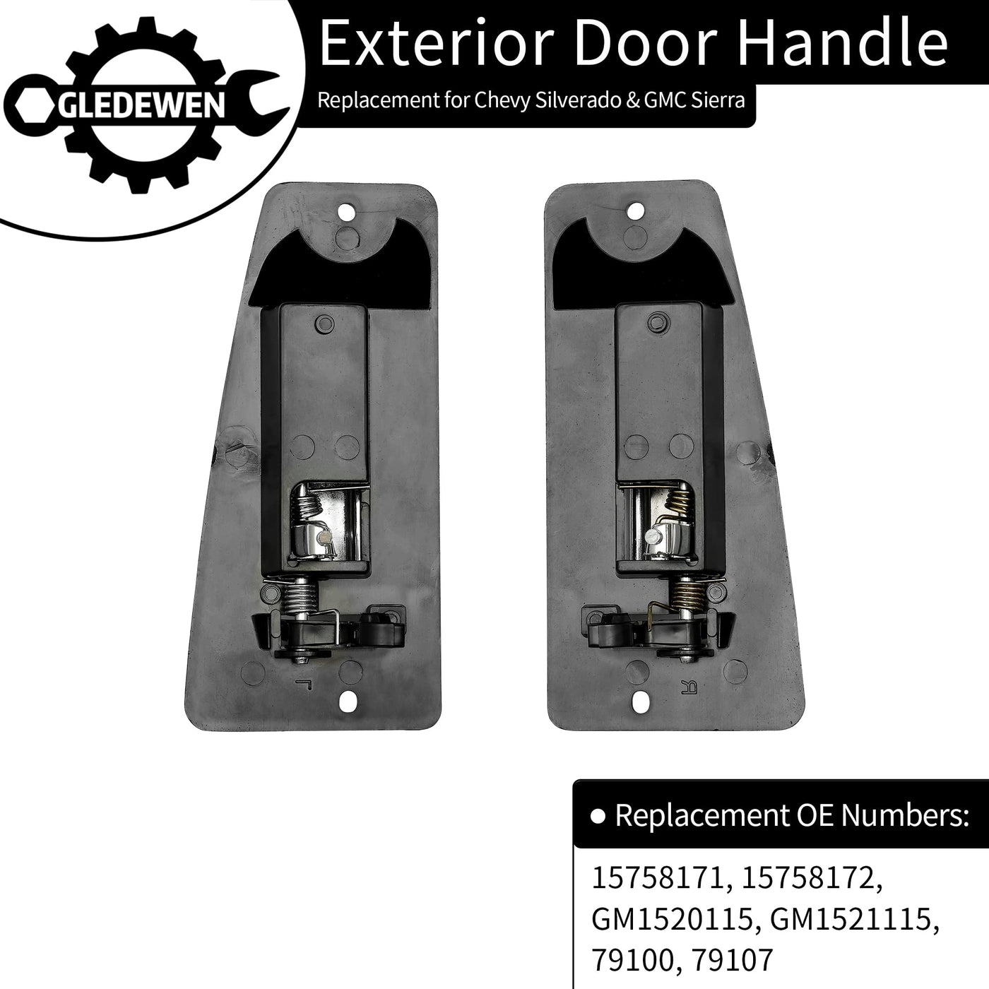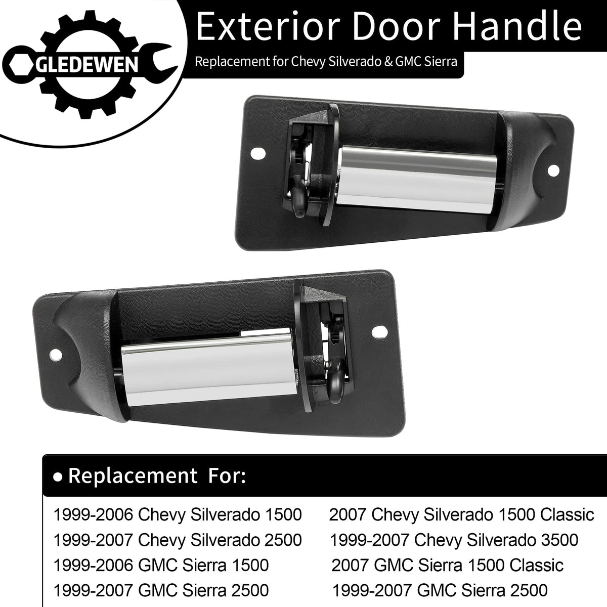 Packing List: Set of 2 Outside Chrome Lever Black Housing Door Handles, Extended Cab Rear Driver & Passenger Side Upgrade Handle Set. Condition: New Compatible with: 1999-06 Chevrolet Silverado 1500 2007 Chevrolet Silverado 1500 Classic 1999-04 Chevrolet Silverado 2500 2001-06 Chevrolet Silverado 2500 HD 2007 Chevrolet Silverado 2500 HD Classic 2001-06 Chevrolet Silverado 3500 2007 Chevrolet Silverado 3500 Classic 1999-06 GMC Sierra 1500 2007 GMC Sierra 1500 Classic 1999-04 GMC Sierra 2500 2001-06 GMC Sierra 2500 HD 2007 GMC Sierra 2500 HD Classic 2001-06 GMC Sierra 3500 2007 GMC Sierra 3500 Classic Precise Fit Part Numbers: 15758171, 15758172, GM1520115, GM1521115, 79100, 79107 Broken door handle? Can't get in your car? Are you searching for the highest quality, best replacement value door handle? We deserve it. Our Door Handle kit, to replace your old or broken part, will meet or exceed OEM standards.