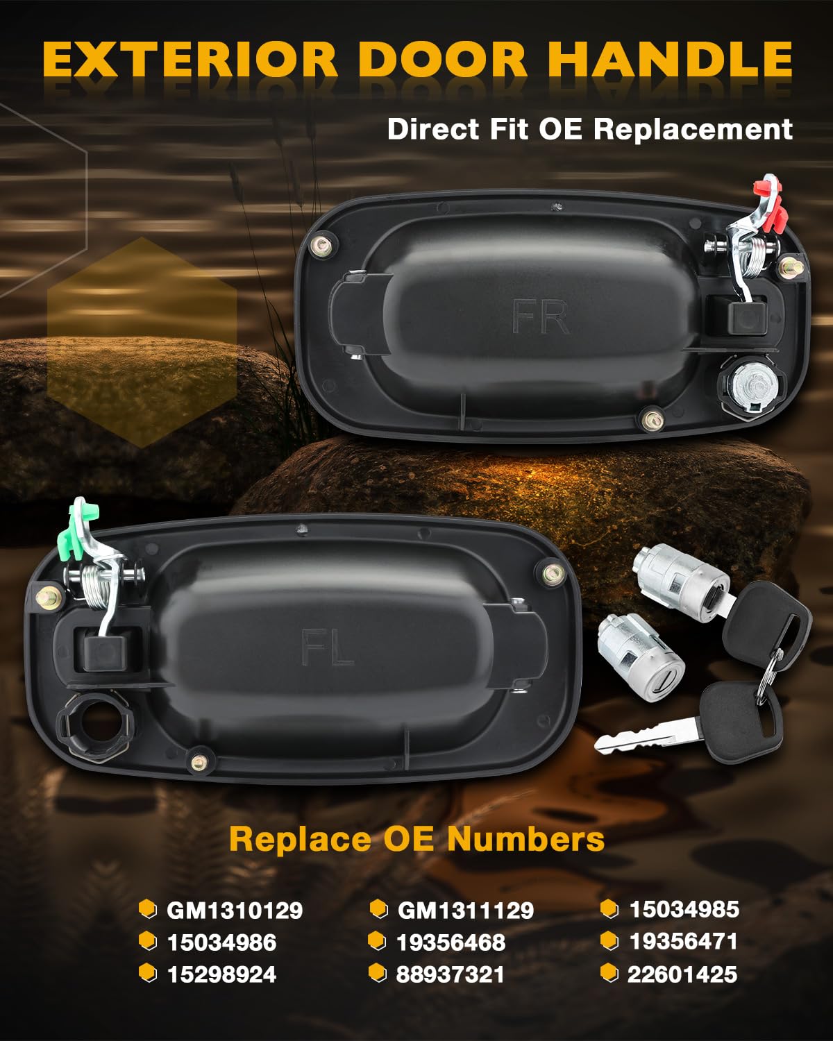 Exterior Door Handles (Pair), W/Lock Cylinders & Keys, Compatible With 1999-2007 Chevy Silverado Suburban Tahoe Avalanche Gmc Si