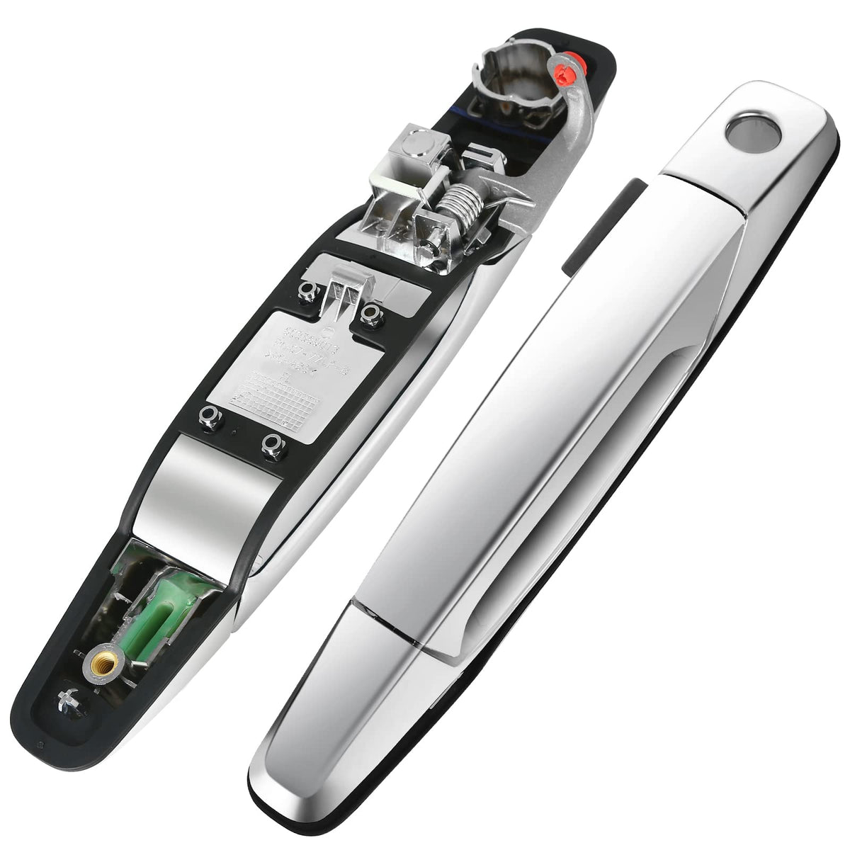Q: What vehicles are compatible with this exterior front driver side door handle?A: This door handle is compatible with various models including the 2007-2014 Cadillac Escalade, 2007-2013 Chevy Silverado 1500, 2007-2014 Chevy Tahoe, and 2007-2014 GMC Sierra among others. Always check the specific model year and part numbers for a proper fit.