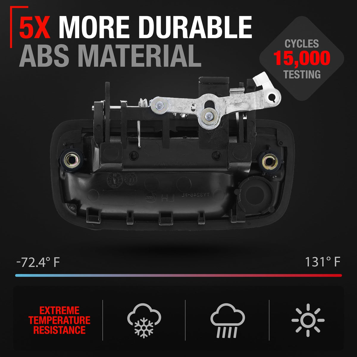 Upgrade the functionality and style of your vehicle with our high-quality Exterior Door Handle. Compatible with 1995-2004 Toyota Tacoma, this replacement part directly matches OEM specifications with part numbers 69210-35020, 91318, 79345, and TO1311117, ensuring flawless compatibility and performance. Our door handle is crafted from durable plastic, featuring a stylish smooth finish that complements your vehicles exterior. Whether you're upgrading for aesthetic reasons or replacing a worn or damaged handle, our product ensures lasting durability and compatibility. The installation process is simple and can be easily accomplished at home with just a few basic tools. Opt for our Exterior Door Handle to maintain the operational efficiency and enhance the look of your vehicle, while also improving its overall functionality.