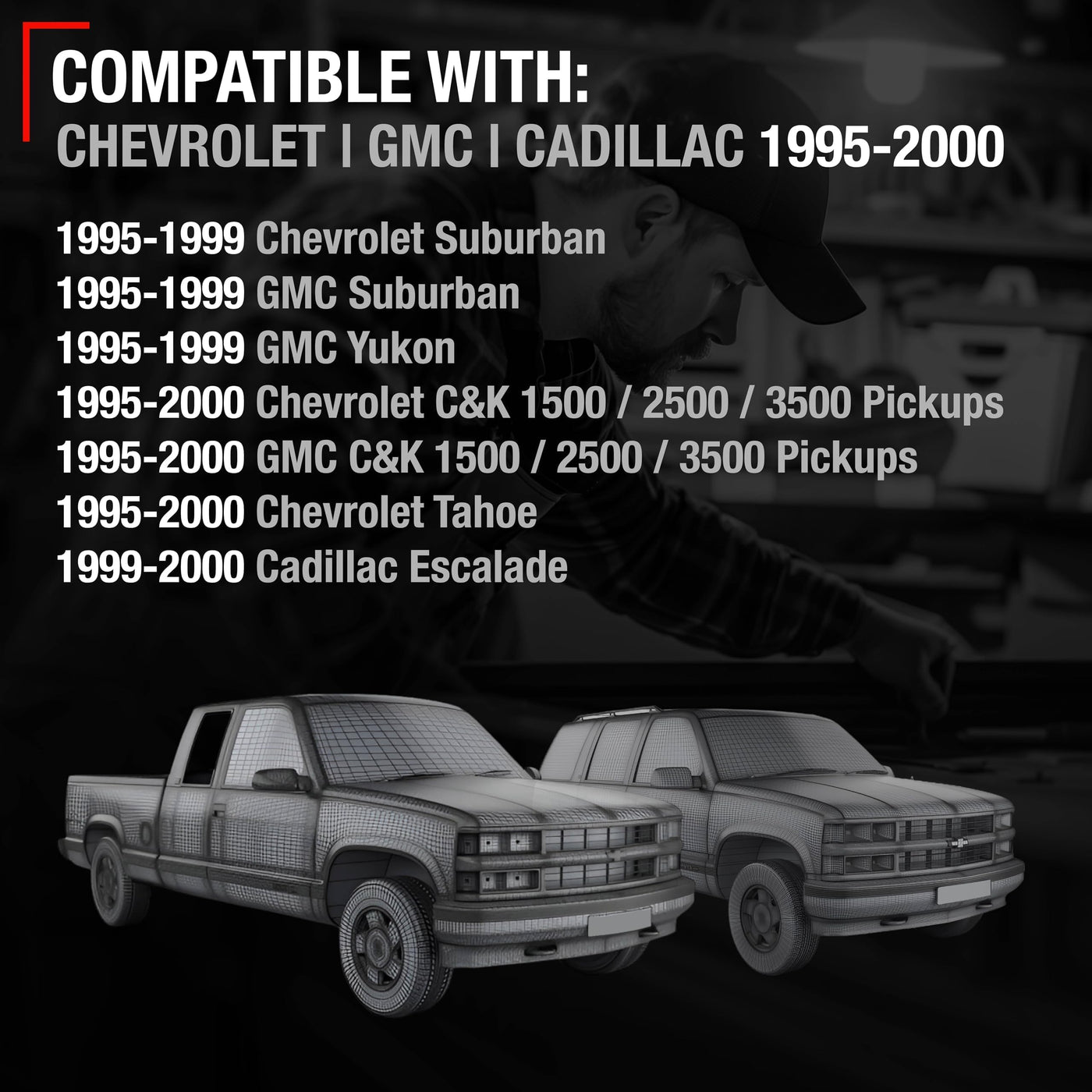 Enhance the functionality and style of your Chevrolet or GMC with our high-quality Exterior Door Handle. Compatible with 1988-1999 Chevrolet C1500, 1988-1999 Chevrolet K1500, 1988-1999 GMC C1500, 1988-1999 GMC K1500, 1988-2000 Chevrolet C2500, 1988-2000 Chevrolet C3500, 1988-2000 Chevrolet K2500, 1988-2000 Chevrolet K3500, 1988-2000 GMC C2500, 1988-2000 GMC C3500, 1988-2000 GMC K2500, 1988-2000 GMC K3500, 1992-1994 Chevrolet Blazer, 1992-1999 Chevrolet Suburban, 1992-1999 GMC Suburban, 1992-1999 GMC Yukon, 1995-1999 Chevrolet Tahoe, 1999-2000 Cadillac Escalade, 2000 GMC Yukon Denali, this replacement part directly matches OEM specifications with part number 15727338, ensuring flawless compatibility and performance. Our door handle is crafted from durable all-metal, featuring a robust textured black finish that complements your vehicles utilitarian exterior. Designed specifically for the front right door, it offers comprehensive functionality and improved access. The installation process is simple and can be easily accomplished at home with just a few basic tools. Opt for our Exterior Door Handle to maintain the operational efficiency and enhance the rugged appearance of your vehicle, while also improving its overall functionality and security.