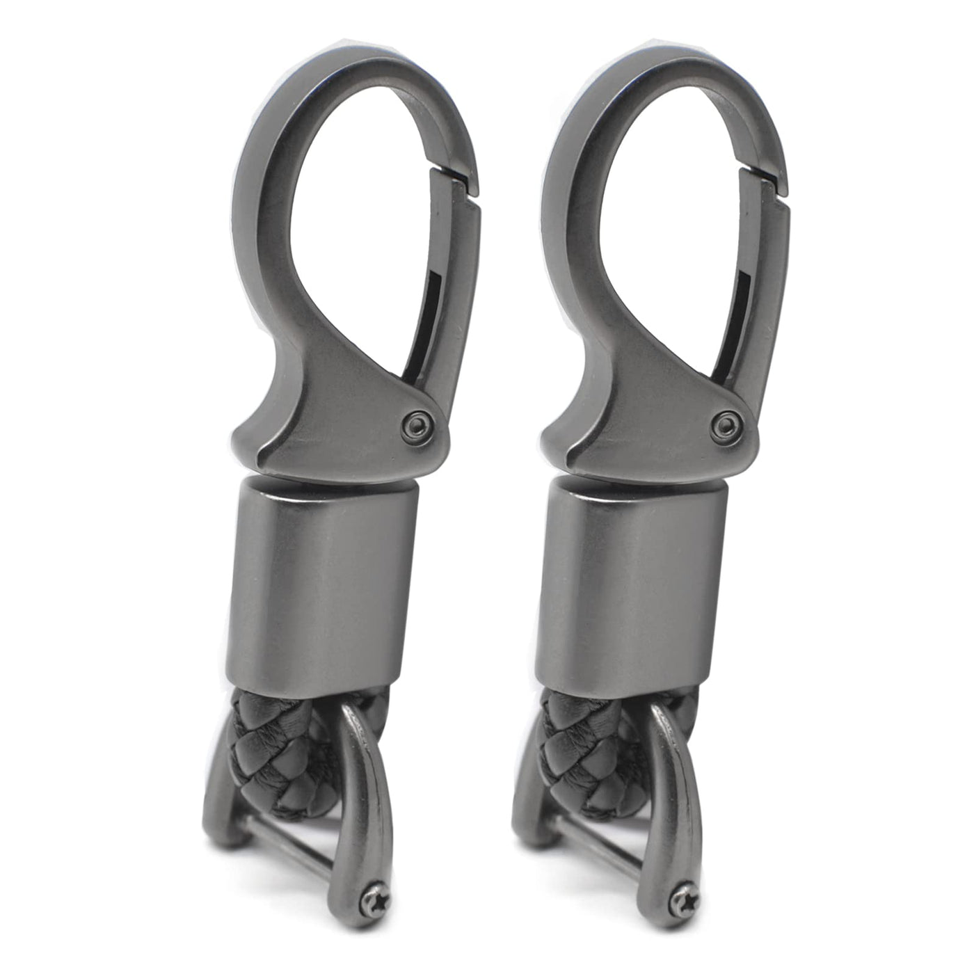 Eyanbis Car Key Fob Keychains Leather Holder Key Chain Sturdy Metal With D-Ring For Men And Women 2 Pack, Black, 360 Degree Rotatable, With Screwdriver