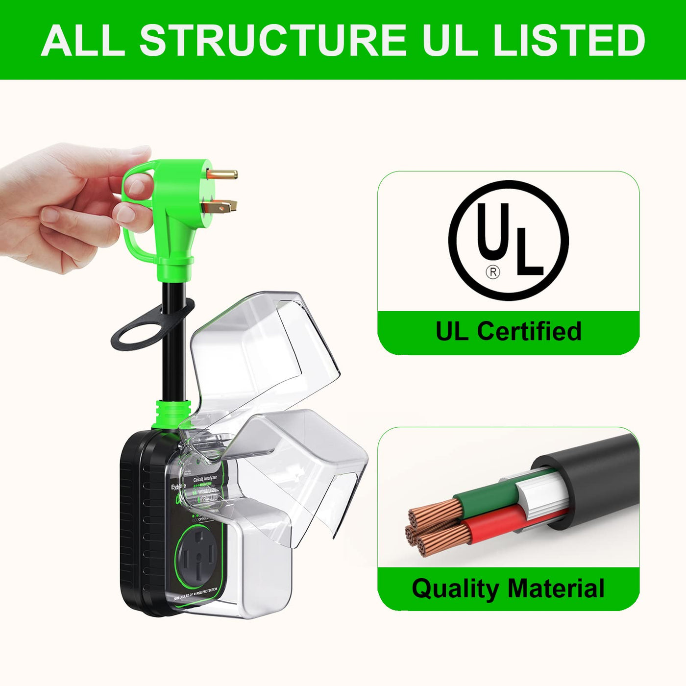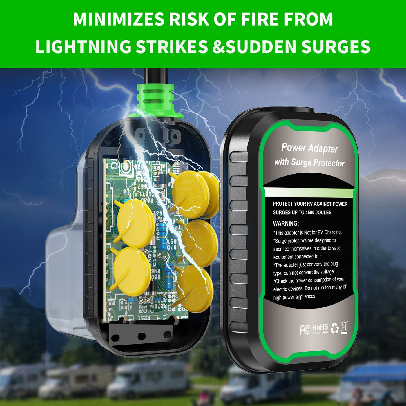 EyGde 30 Amp to 50 Amp RV Adapter with Surge Protector - Upgraded Patented NEMA TT-30P Male to 14-50R Female Plug, RV Circuit An