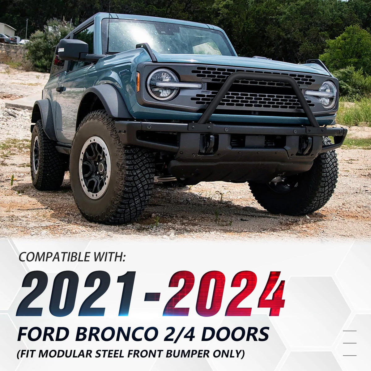 Eyouhz Bull Bar Grille Brush Guard With Light Mount Compatible With 2021 2022 2023 2024 Ford Bronco 2/4 Door (For Modular Steel Front Bumper Only) Rock Off-Road Front Bumper Rack Push Bar-Black