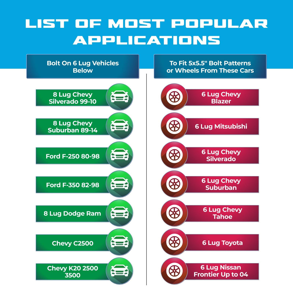 Ezaccessory 2 Wheel Adapters 8X6.5 To 6X5.5 Fits Early Ford Chevy Dodge Hub & Mount 6 Lug Chevy Toyota Wheels