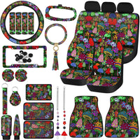Fabbay 26 Pcs Mushroom Car Seat Covers Set with Seats Protectors Steering Wheel Cover Seat Belt Cover Floor Mat Armrest Cushion