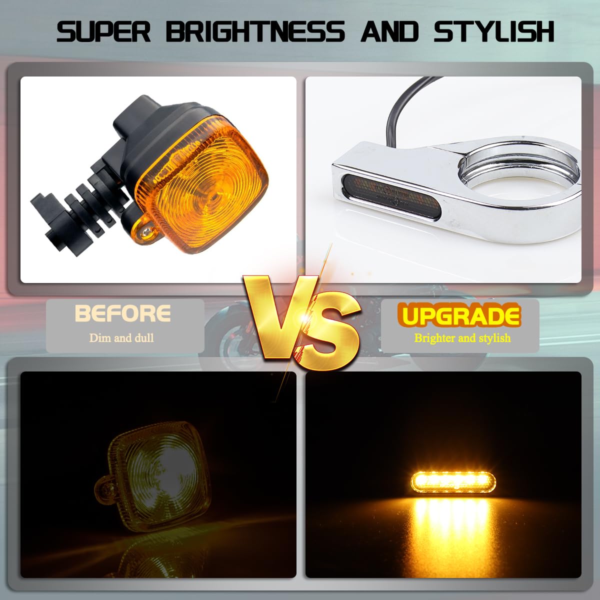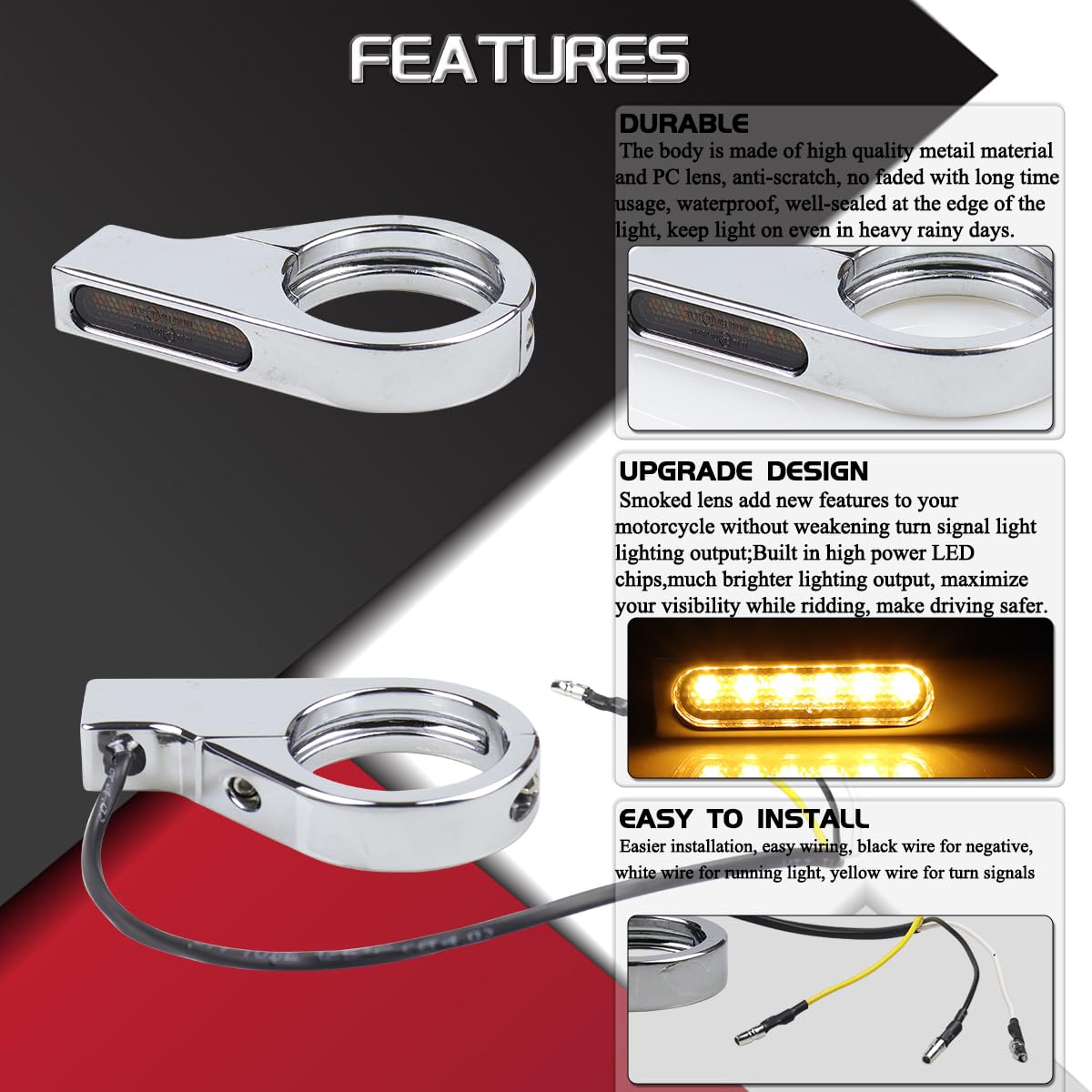 FACAILAHA Motorcycle Switchback Front Fork LED Turn Signals Universal 12V Sequential Amber Blinkers Running Lights fit Honda Har