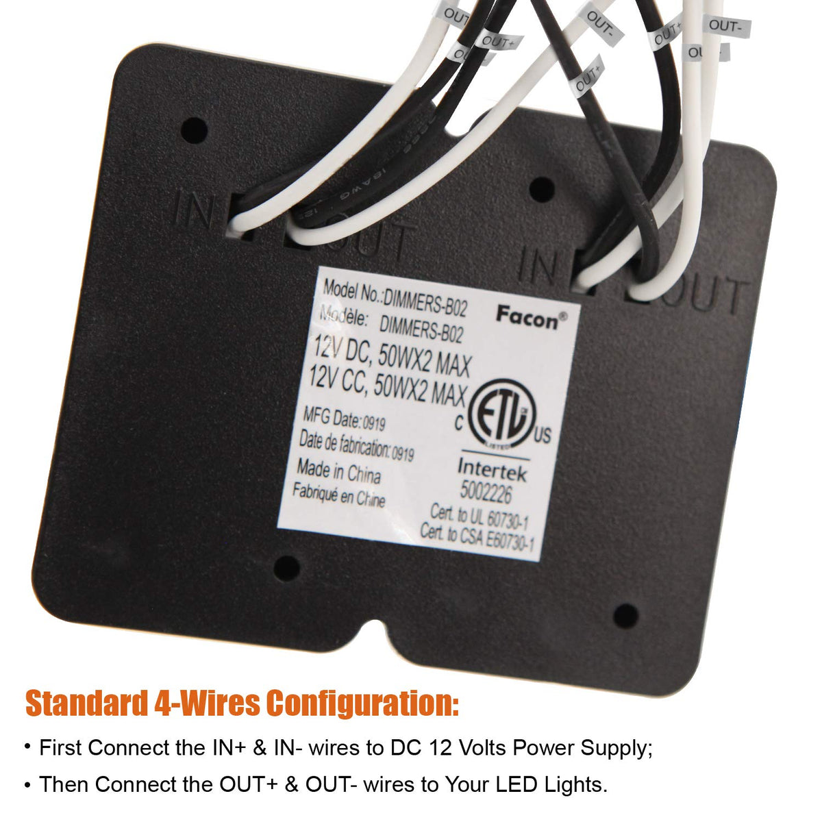 Facon 12Volt Touch Double Dimmer Switch,100W Max, Pwm Wall Mount Dimmer Switch, Use With 12V Led Lights, Incandescent And Haloge